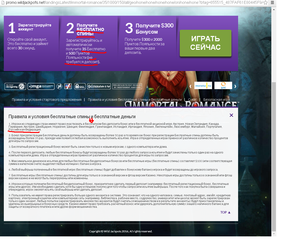 Ниже еще условия и положения. И как раз спины для России. Ну думаю круто, сейчас будем крутить.