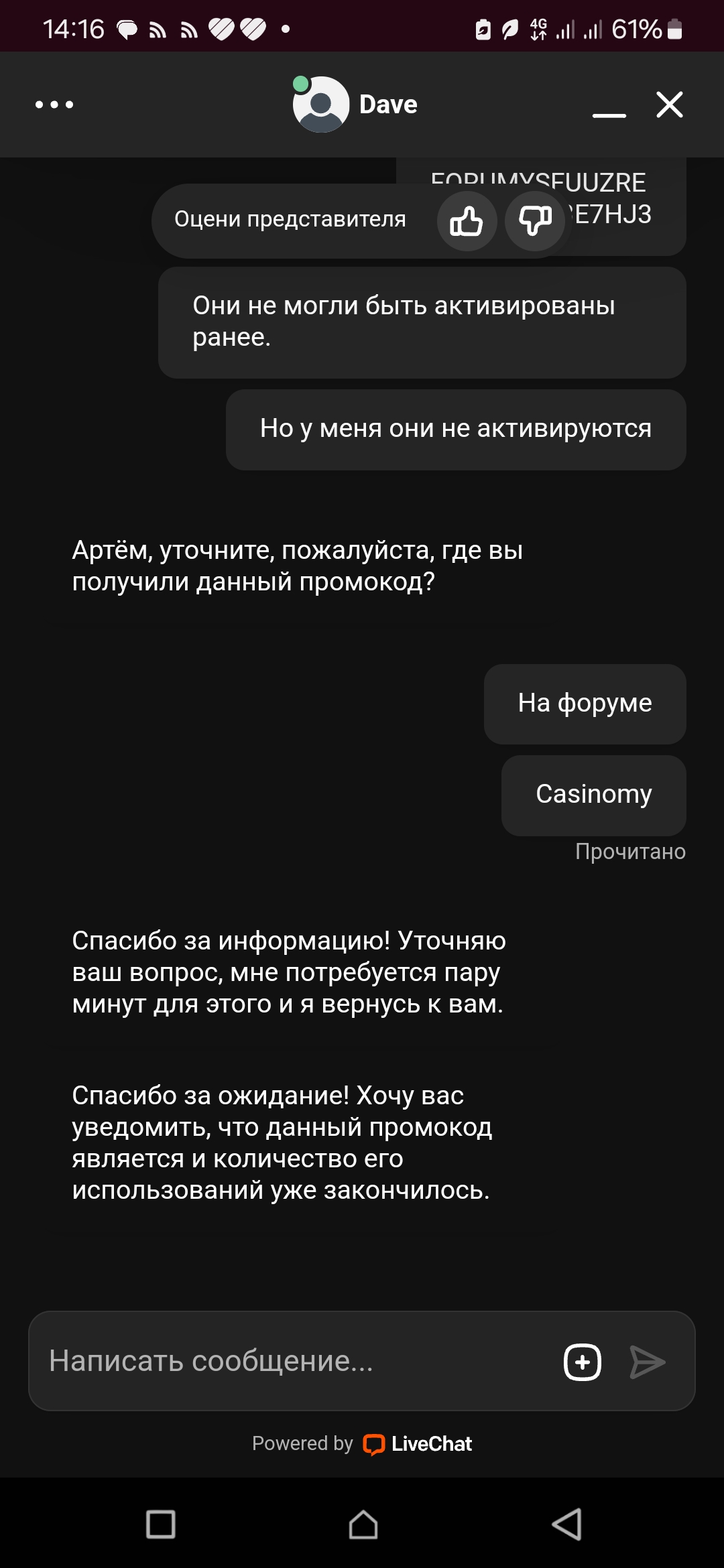 Походу меня отключили от кодов ни один не сработалЕще 2 промо -