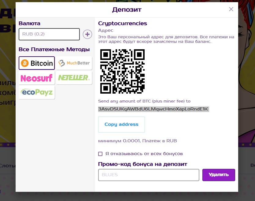 Минимальный депозит 1 евро (или эквивалент во всех других валютах)