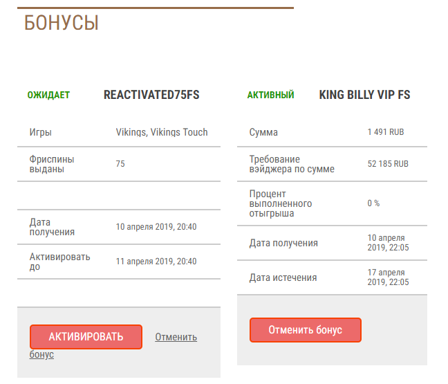 King Billy: бонусы, акции, фриспины казино