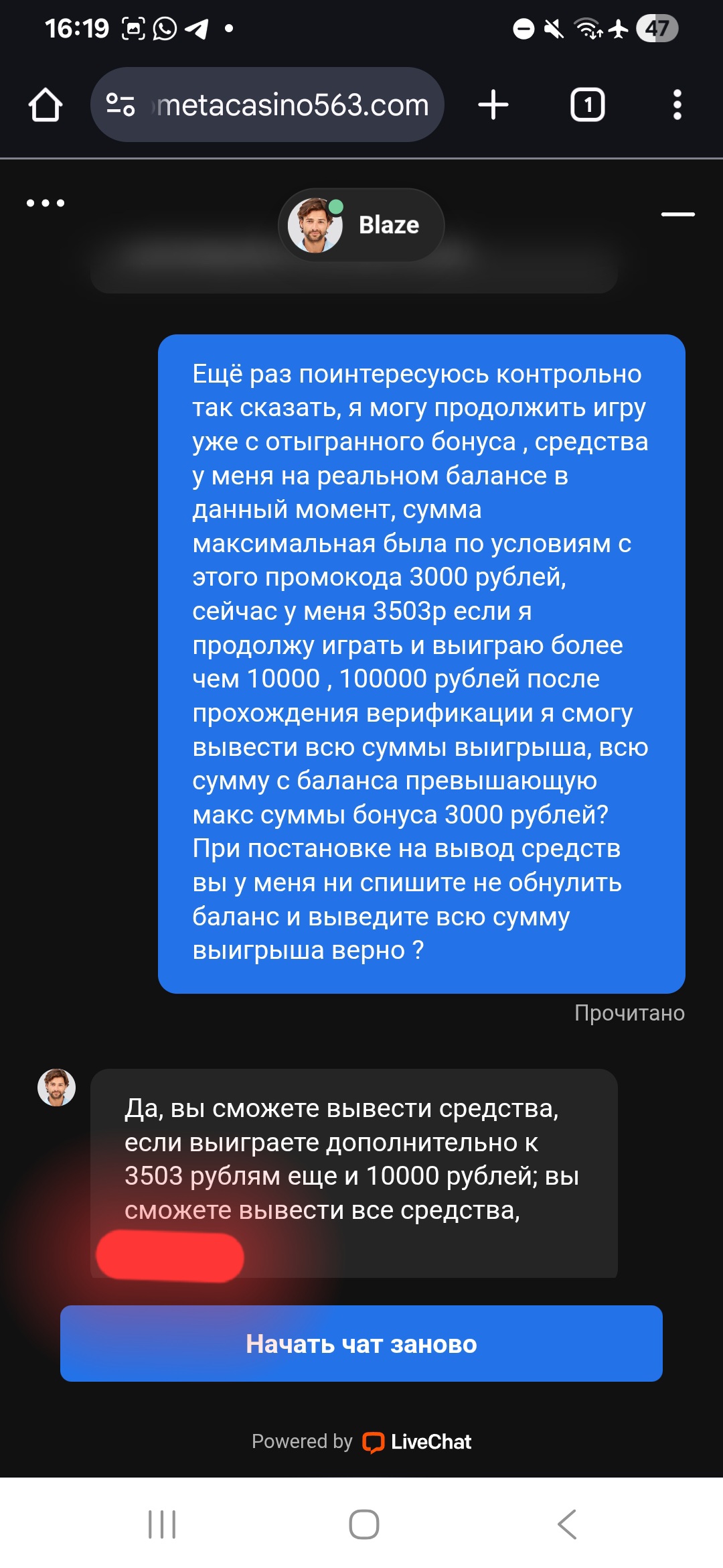 Спасибо большое! Я такие "казино" проблемные где даже при первом выводе вставляют "палки в колеса" прощаюсь сразу, их менеджеры часто звонят ещё раз наберу выскажу, всё что о них думаю, самое прикольное был один изначально сотрудник точнее сотрудница чата общалась заранее в начале общения, диалого попросил не переводить и не теряться на другого сотрудника так как знаю у них в их сетке есть такой "прикол" особенно когда пишешь просьбу об перманентном блоке и что вы думаете всё равно в процессе общения меня перевели на "старшего" специалиста )) та видимо младшая была . Да ну их хорошо, что ща всё это вылезло а не после 25 депа и вывода более существенной суммы. Просто проходил знаю они бы всё равно максимально затягивали бы и с верификацией и с выплатой, то не видно, локоть не в кадре, паспорт инфа не читабельна, депнуть снова с нового метода платежа отвагерить х3 и.т.д и.т.п в любом случае спасибо большое за предложенную помощь возможно с помощью вас , форума ускорить бы этот процесс, снова же не стал я бы всё это делать за 3,5к было бы за 10к то да подсуетился бы ) .