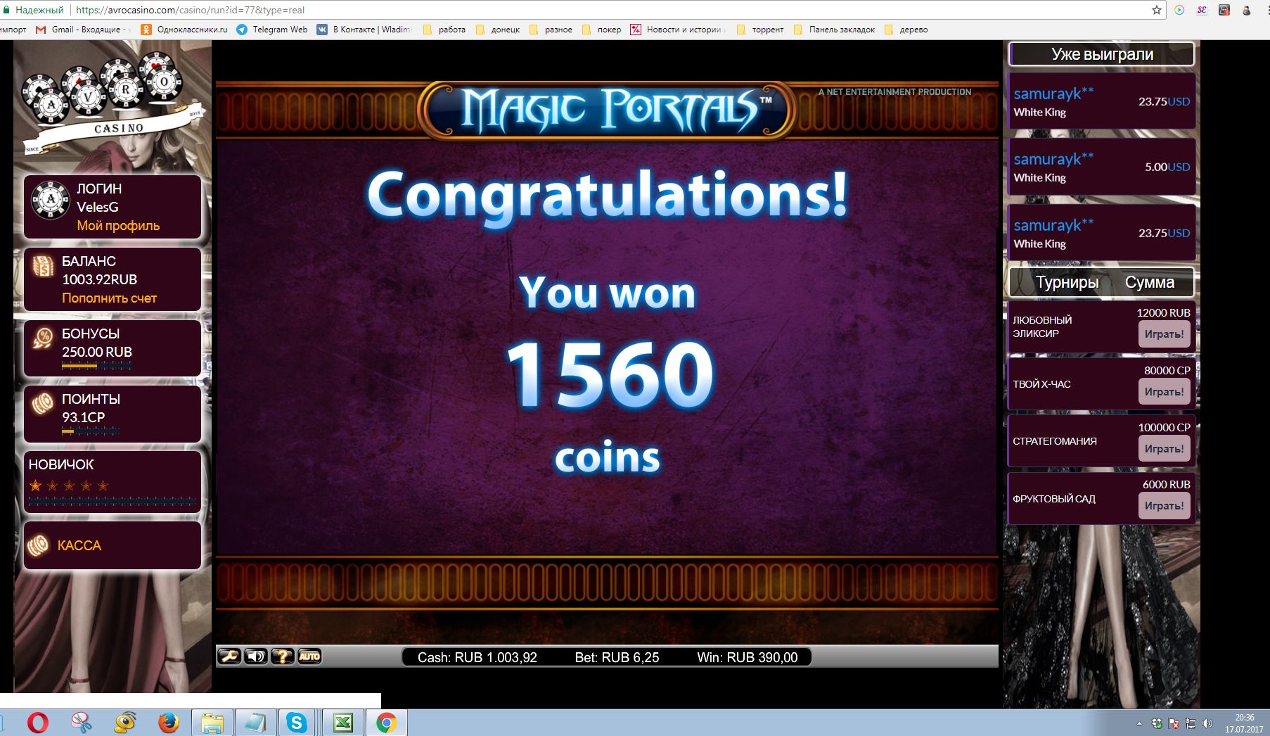 про нема не знаю как! но пока не известно время еще есть до конца месяц кто то может словит один раз Х-3000 и все)А неме выплатили положенную сумму или нет ? вот интересно!! Ты вообщем должен выиграть етот тур по скринам!!