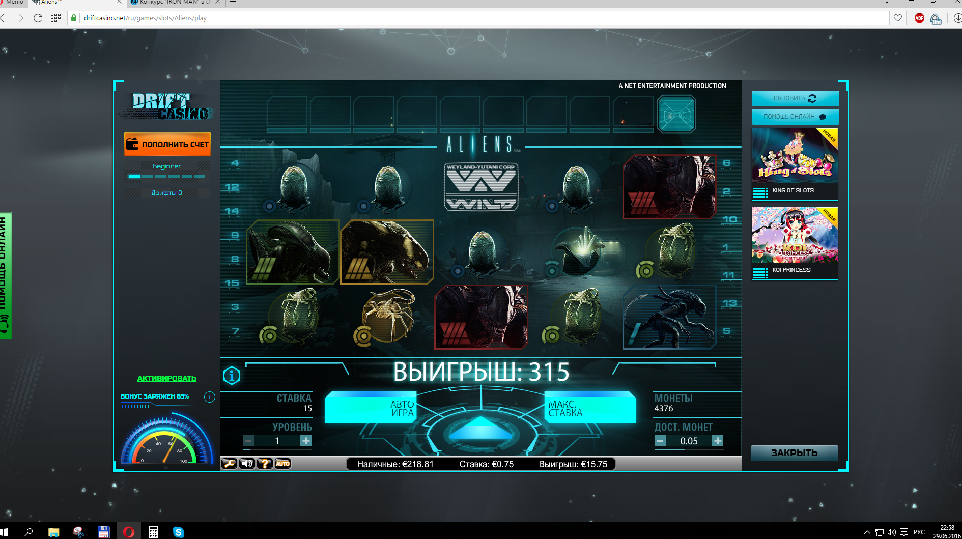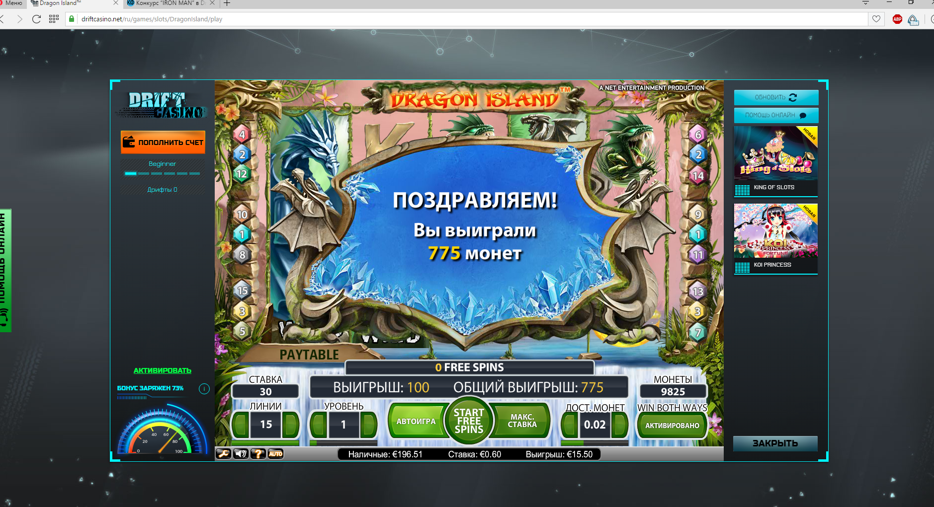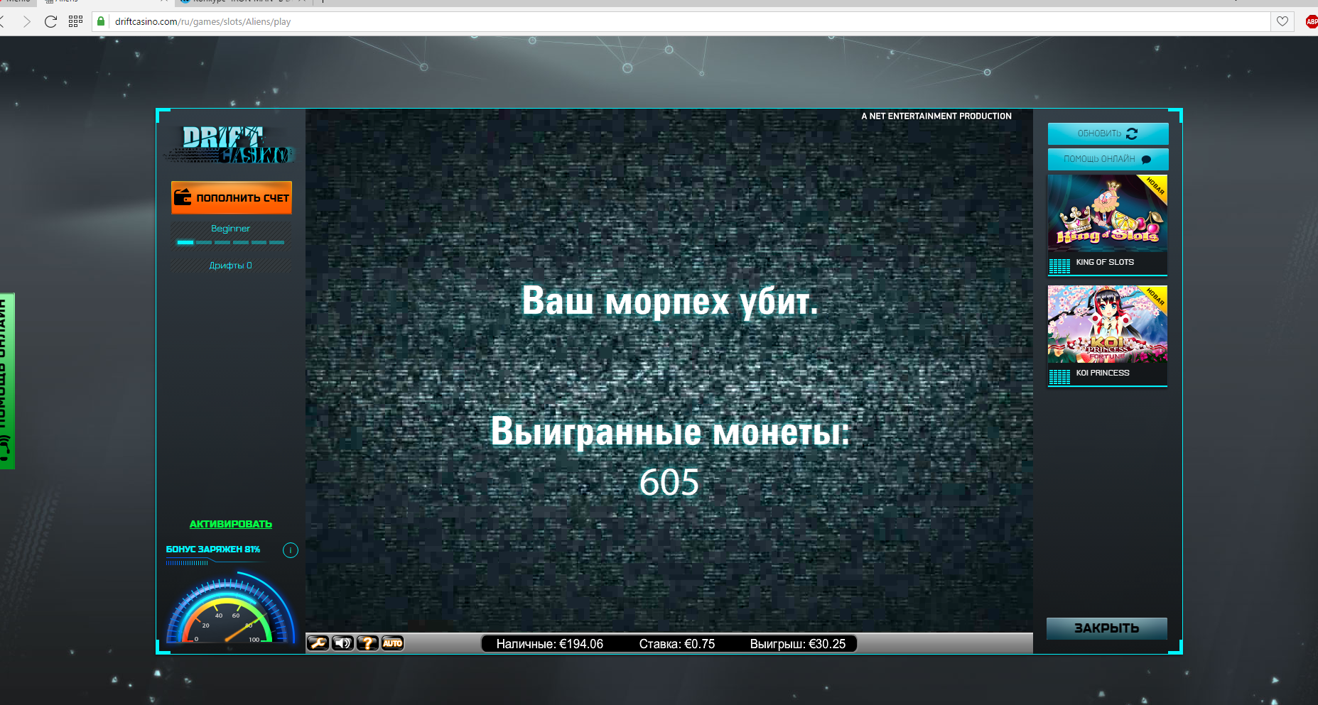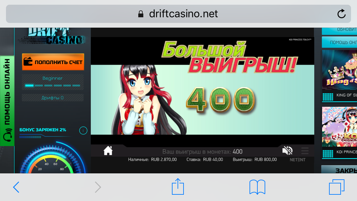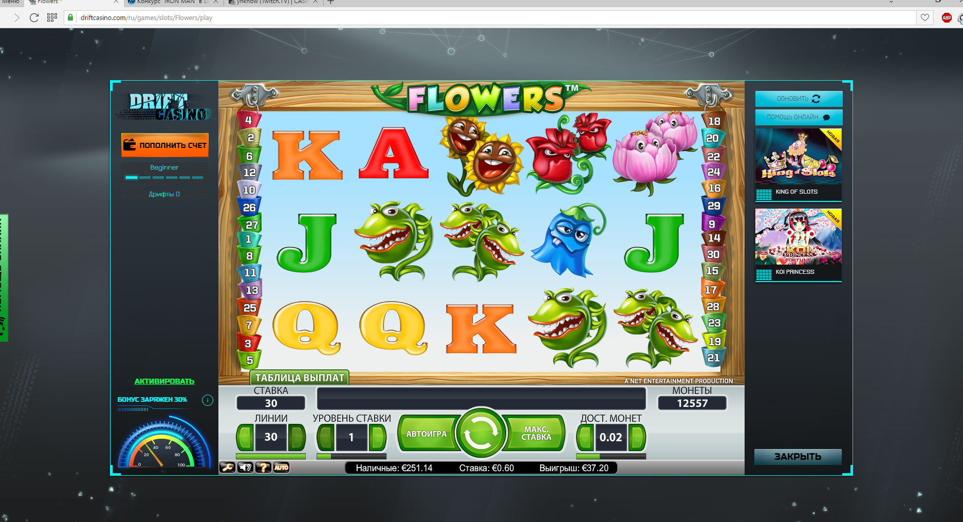 играю с 2 часов примерно кактка очень нравится спасибо админам казино дрифт за такой конкурс как раз 1 числа з.п закинуть и так к ним хотел а теперь темболие деп