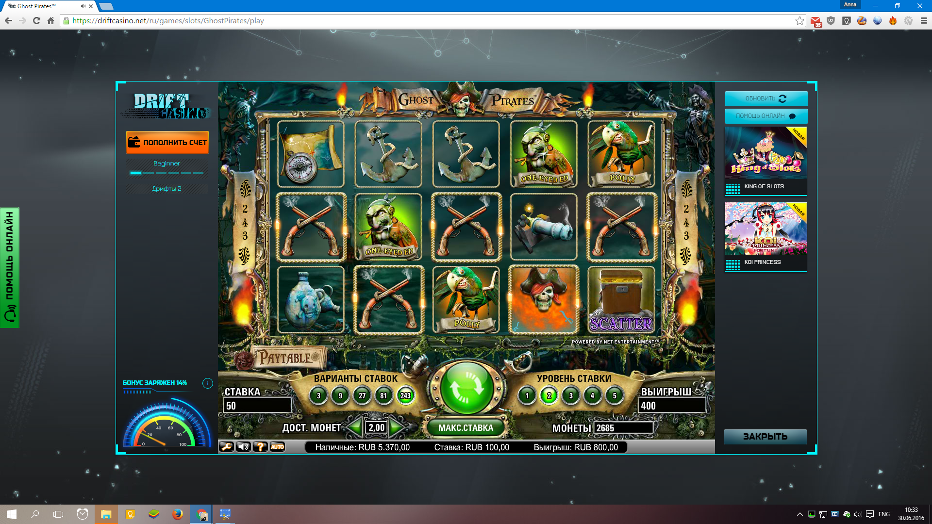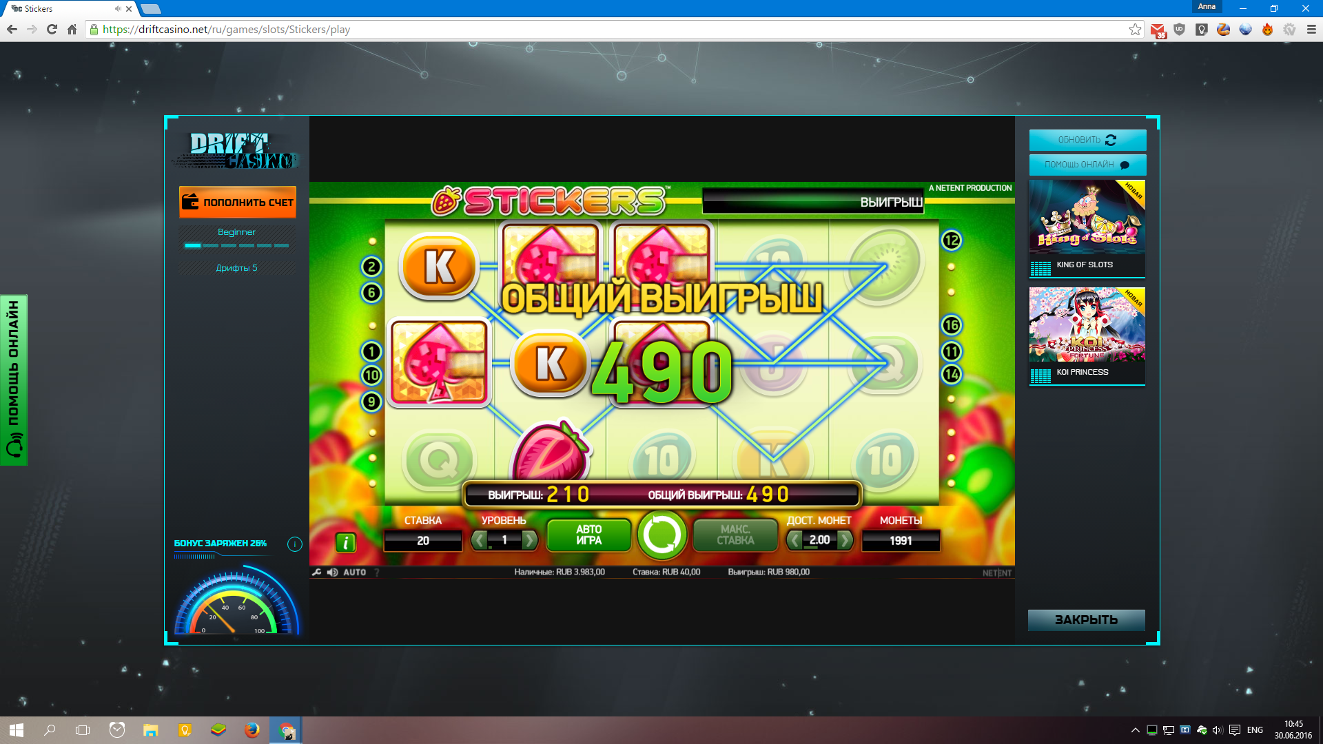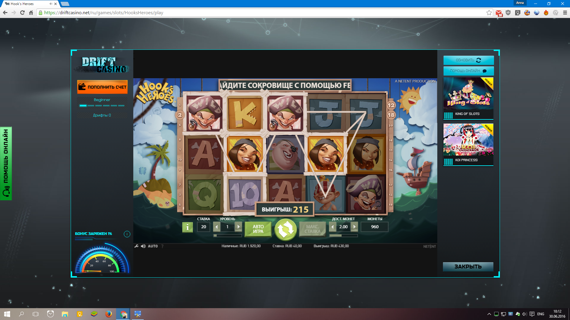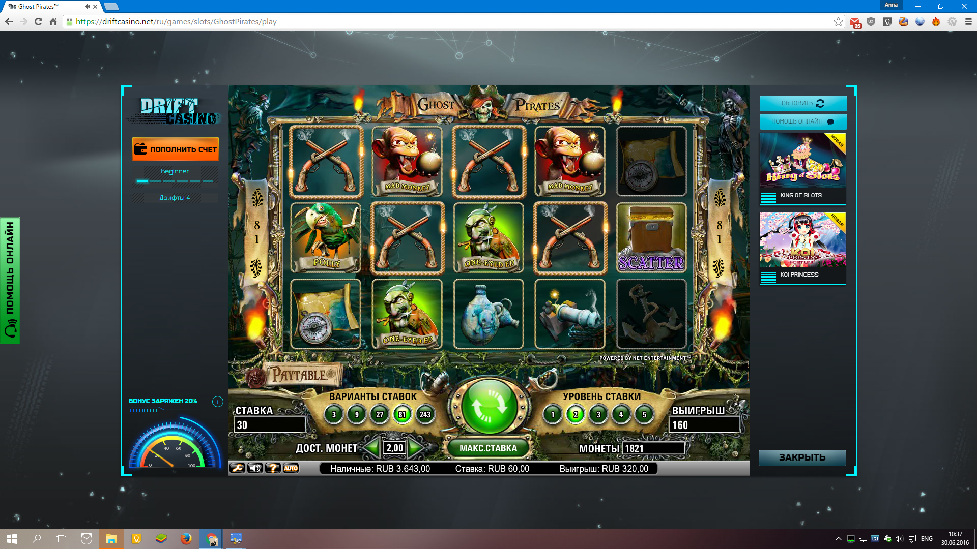 А вот и мой не большой вклад в этот замечательный турнир,гонку.Кстате без лести одна из лучших гонок в которых я принял участие (надеюсь не последняя) на этом великолепном форуме.В любом случае попаду в призовые или нет,спасибо всем тем кто организовал гонку,администрации казино и форума и конечно отдельное спасибо прекрасной представительнице казино.