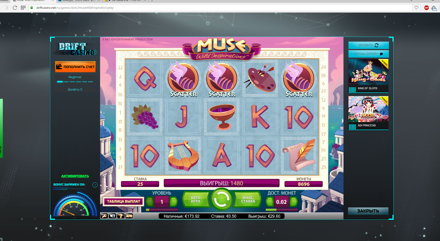 я играю с мобильника и там игра грузится отдельно от фона казино и тоже не фиксируется,не отображается дата,число,время. Ваш ответ меня обрадовал,впринципе я думаю проверить не сложно.Скрины будут от меня позже попробую накопить и разом выложить и Вам и нам удобнее считать балы,очки будет.Удачи всем!