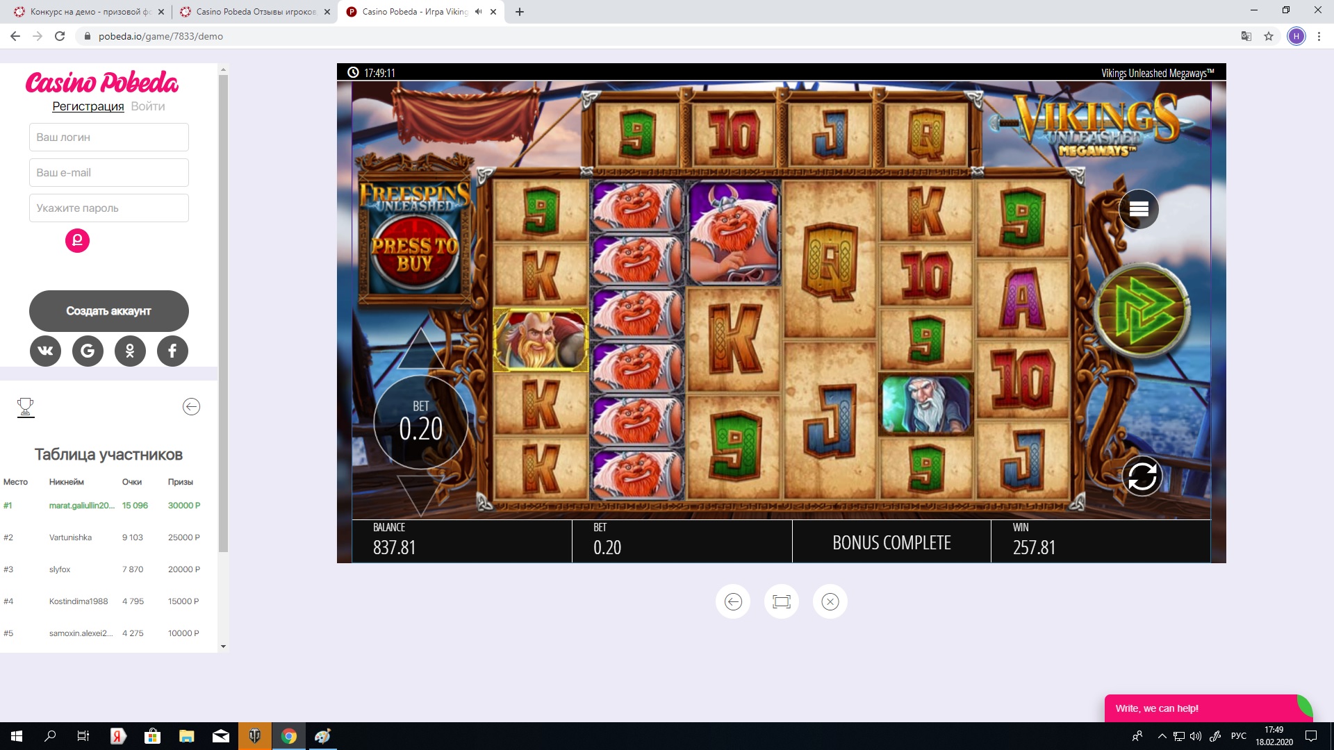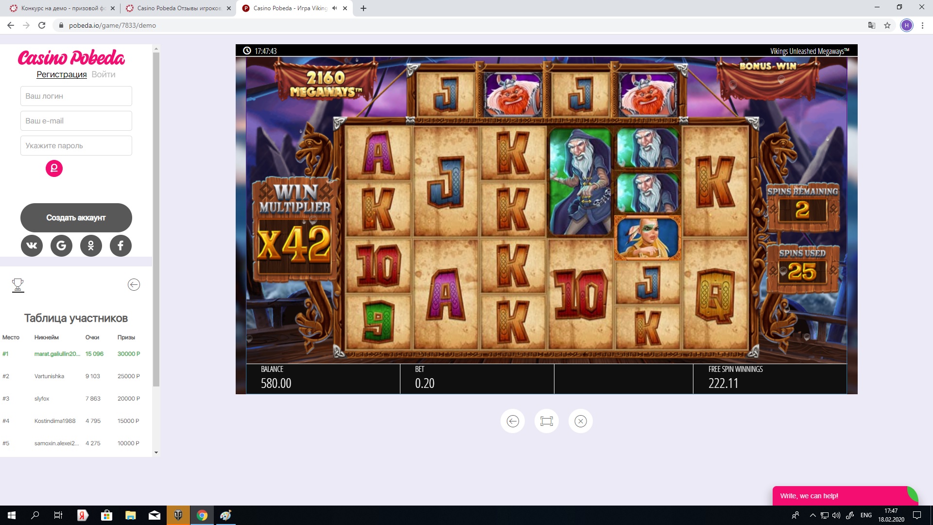 Пятый игровой день проходит в казино Pobeda - скрины принимаются до 12.00 мск 19 февраля!