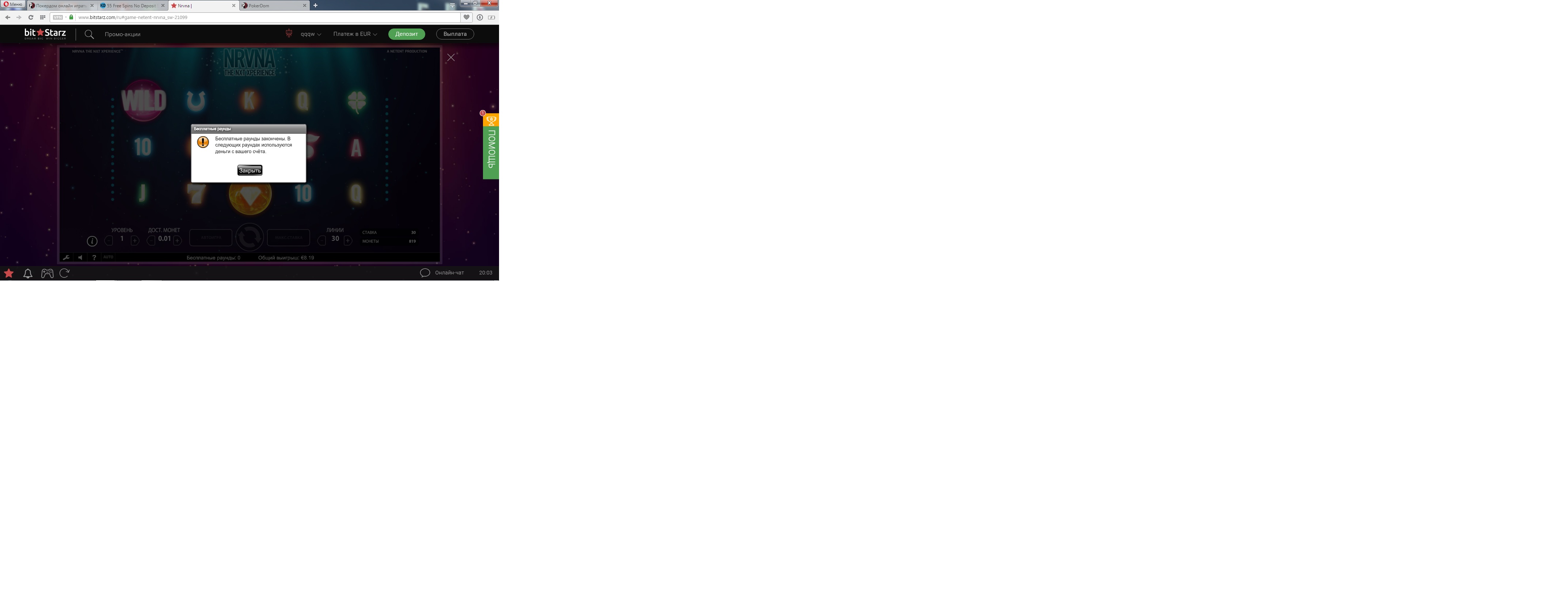 Уважаемый, хорошо, что выбрали этот замечательный ресурс для проведения турнира. Надеюсь, что в дальнейшем будете нас радовать более заманчивыми акциями. Лично я воздержусь от депозита в полтора рубля, чтобы получить 20 фри спинов. Были были бы эти фри спины без вагера другое дело, вейджер х40. Возможно кому то устраивает такая акция, но мне никак, то же самое, как некоторые конторы типа Лото. ру, Вабанк оповещают- получите подарок 20 фри спинов с вагером х35 за депозит от тысяча рублей . Ни как не могу отучить такие конторы, что слова подарок не как не связано с финансами :). Ваше казино замечательное, нареканий у меня нет, но надо подумать вам насчёт размера мин депа. Когда будет у вас слоты от провайдера микрогейминг и скачиваемый вариант казино, тогда я подумаю на счёт внесения депозита в тысяча рублей, хотя зачем, если меньше сумой можно посетить другие казино, с играми от микро, нетен и т.д. Всего доброго и процветания вашему проекту.
