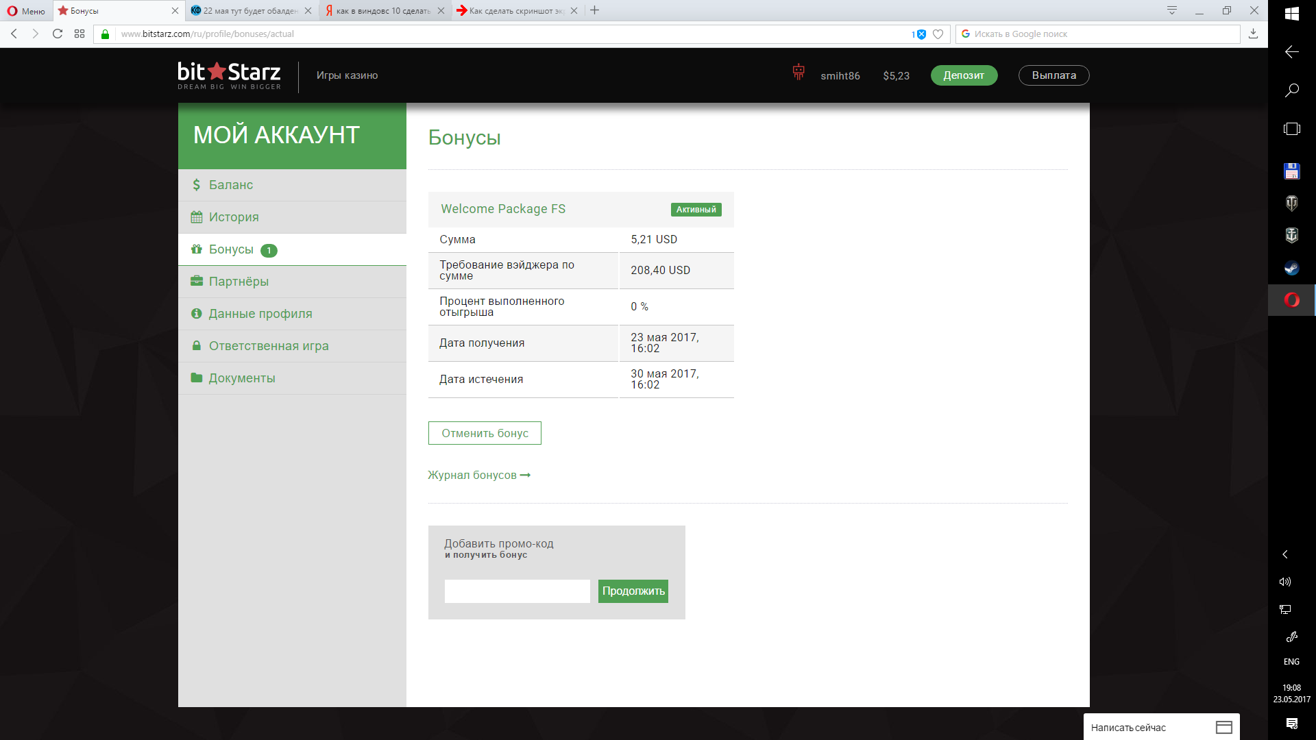 Такой скpин пойдет? тут просто еще 100% бонус слева
