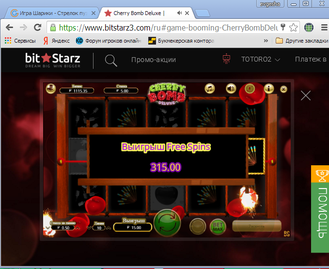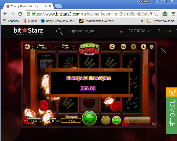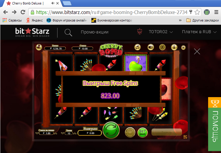 Кстати, слот CHERRY BOMB, дал удержаться на плаву в районе 1 т . р сыпя бонусками практически через каждые 10 спинов.... В общем наигрался. Всем спасибо!