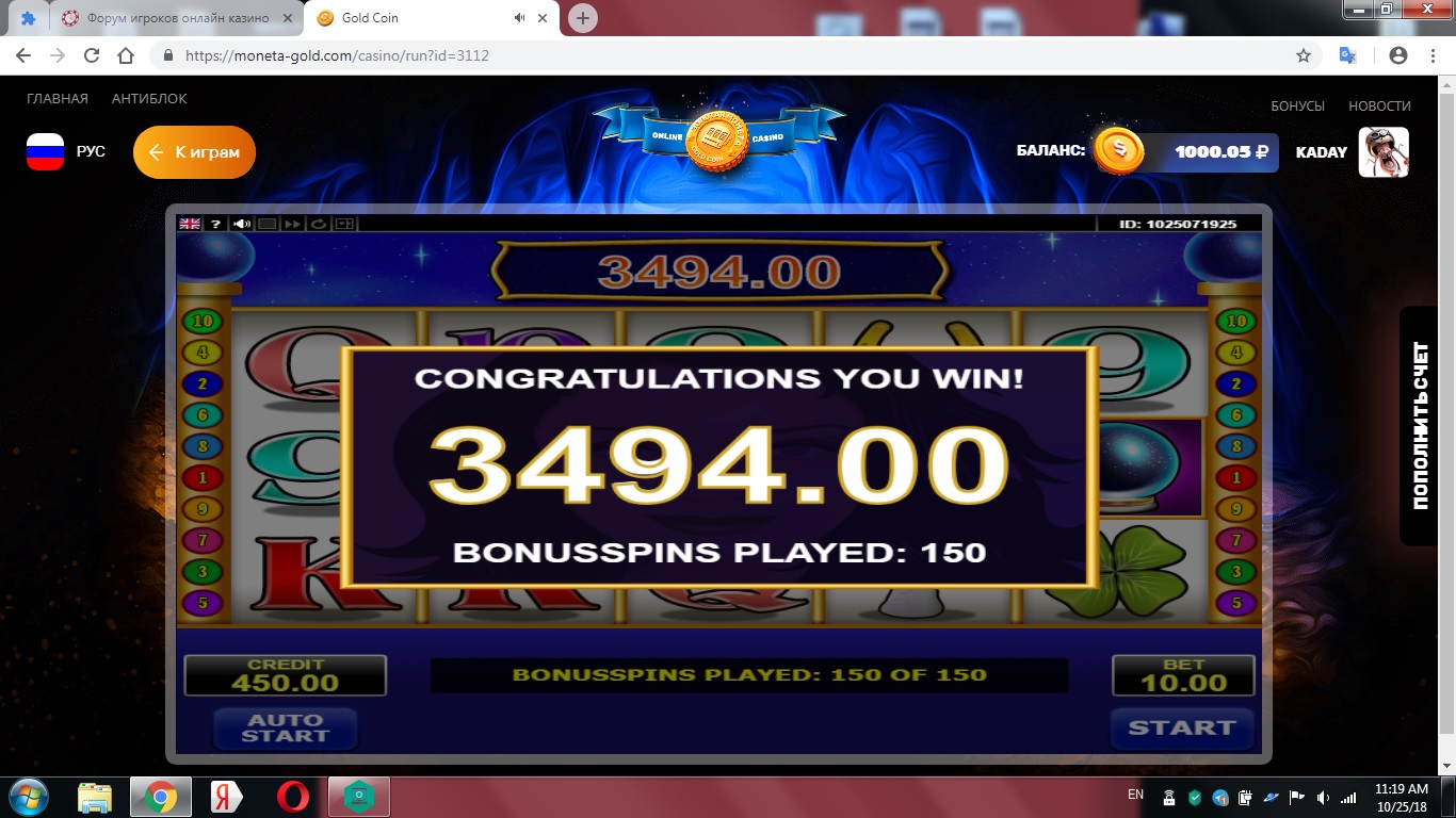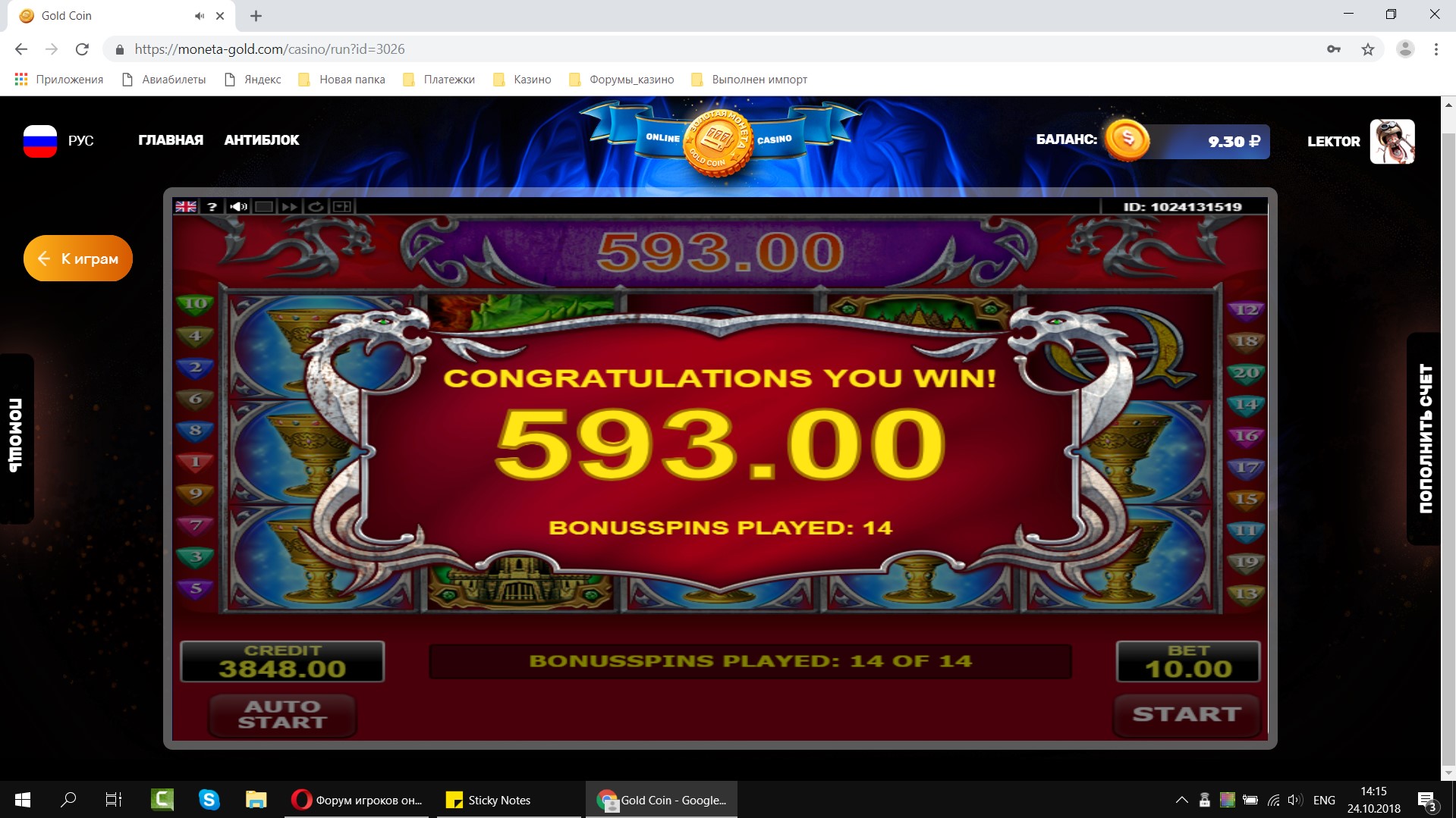 Дядь, что ты мелешь? Какие мульты, какие разные ПК, у тебя реально крышу рвет или что?) В чем конкретно ко мне претензия я не могу понять? Что я за короткий промежуток времени поймал много умножений? Так открой первую страницу темы - ты с такой же скоростью свои иксы поймал и что тут такого? Ты понимаешь что в аматике в настройках слота есть быстрый спин, включив его за минуту можно 100+ спинов откручивать, и в чем тогда проблема каждые 5 минут ловить бонусы при такой скорости открутки? Еще раз повторяю - разные браузеры, айпи адреса, ПК и т.д. я не использовал. Я сотни таких турниров отыграл за годы игры и если бы жульничал или нарушал что-то то это давно бы уже всплыло.