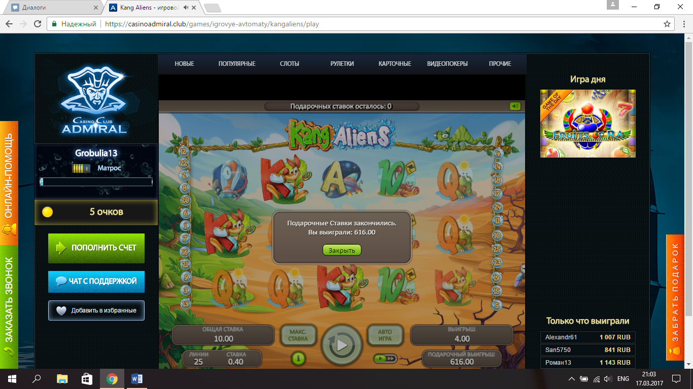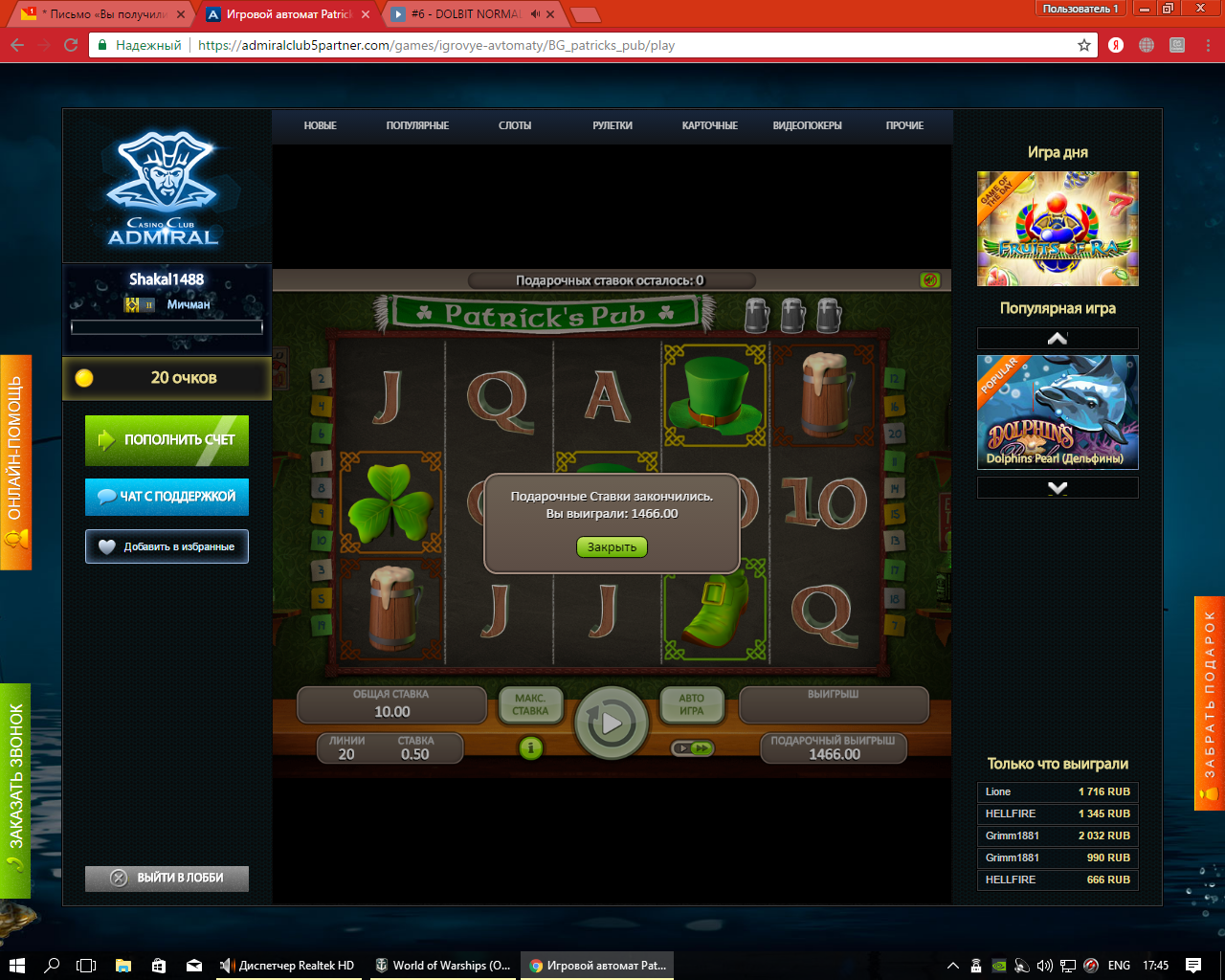 Нормально так))) играешь с открытым окном чата,а оттуда периодически-держись братан,через пару дней может быть отыграешь)))Вы о другом подарке, теперь я поняла.Да, фриспины в Патрике с вейджером, но сколько остаётся отыграть по данному вейджеру нужно уточнять в поддержке.