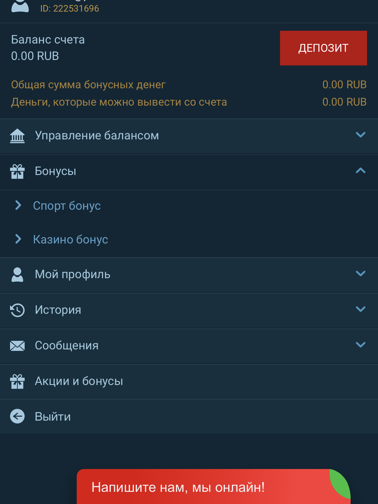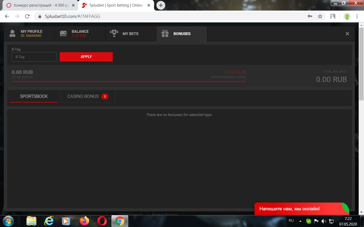 После регистрации делаем скрин где виден номер ID и ваши текущие бонусы, вот пример: