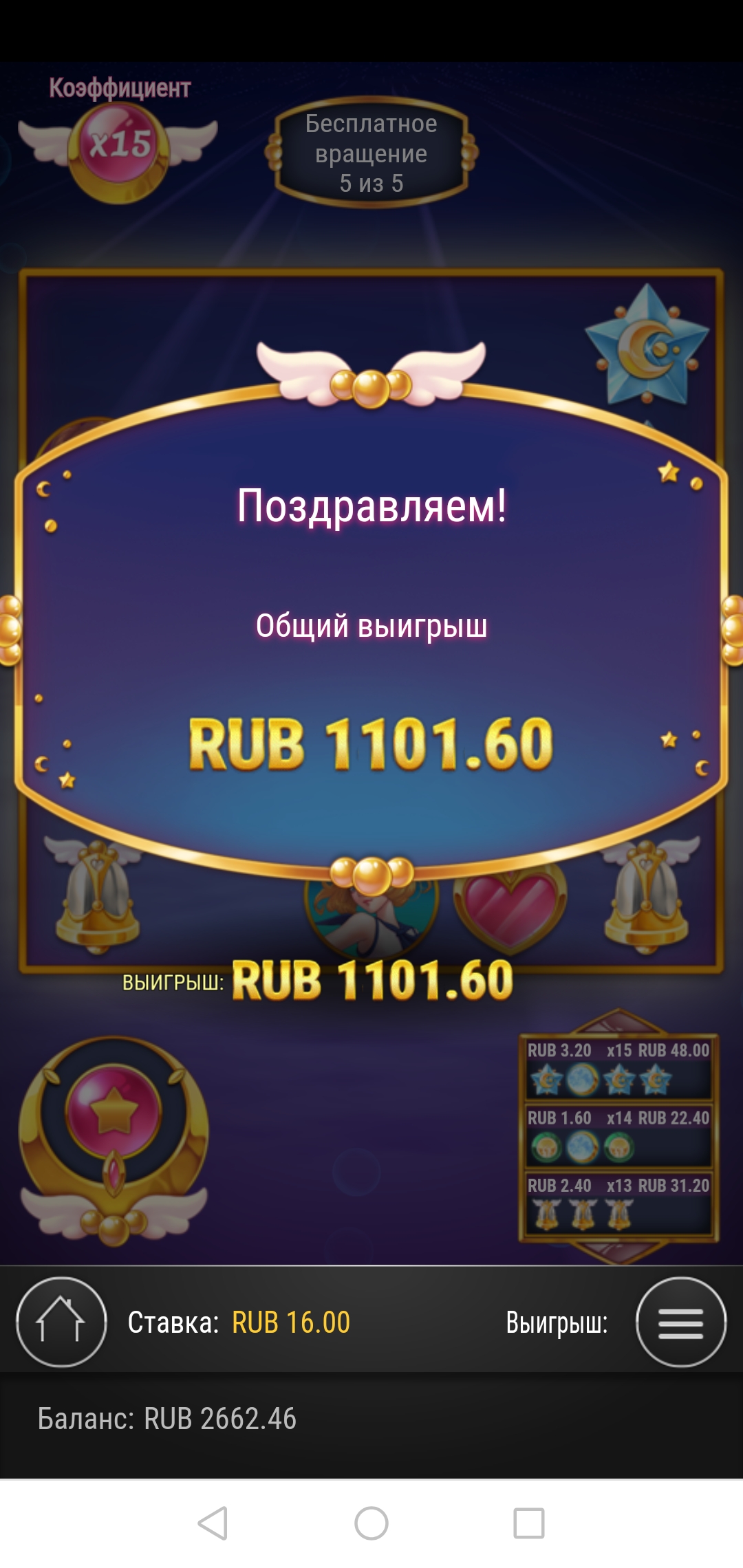 например, сумма 795 состояла из 2 ретриггеров, ставка - 15 RUB, первая выплата 30, снова ставка 0 RUB (наше бесплатное вращение), выплата 405 RUB и финальная пара 0-360 RUB.