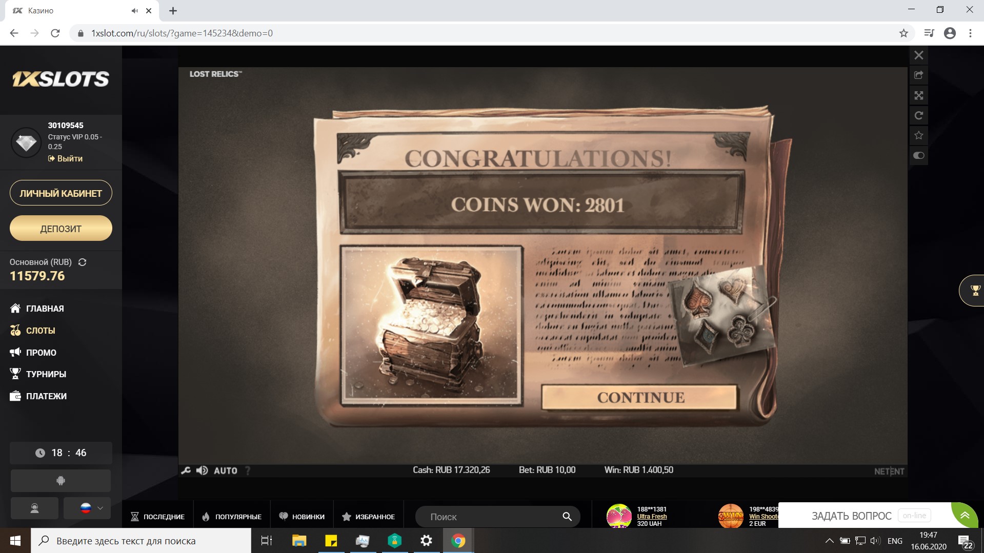Всю информацию передал представителю казино @1xSlots, ждем начислений, согласно правил в течении 72 часов.