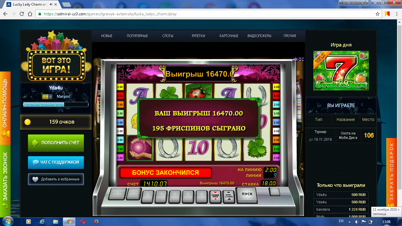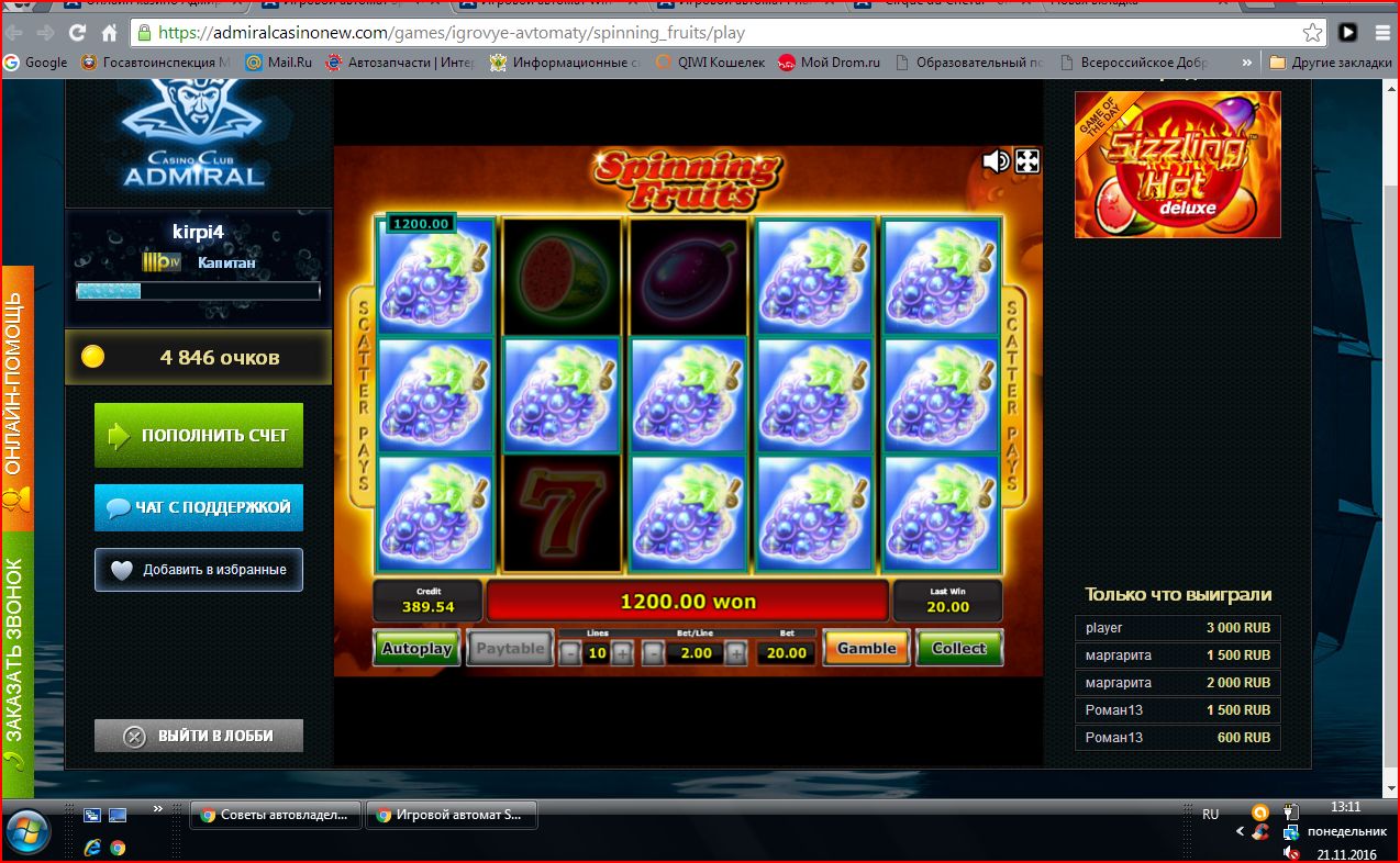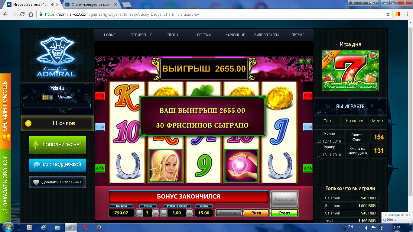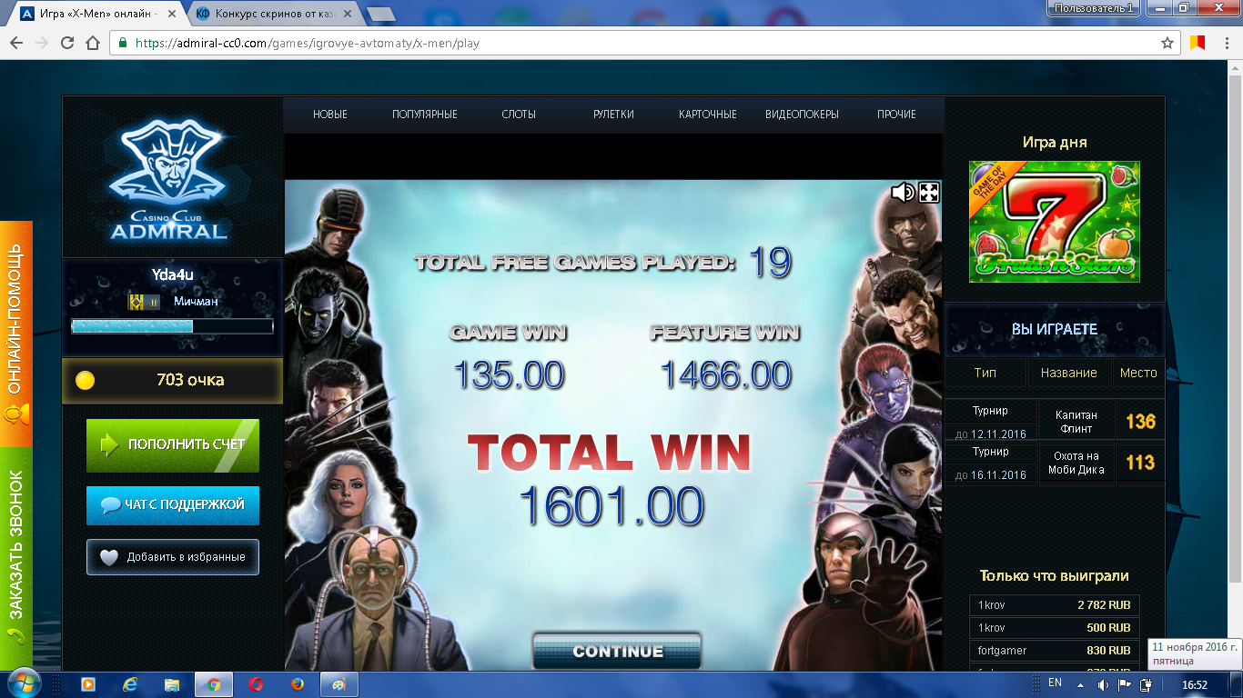 Завершилась очередная неделя конкурса скринов от казино Адмирал, в этот раз призовые места распределились так: