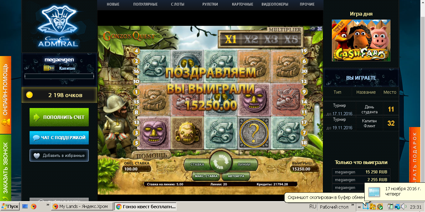 Завершилась десятая неделя конкурса скринов от казино Адмирал, а призовые места заняли самые активные участники!