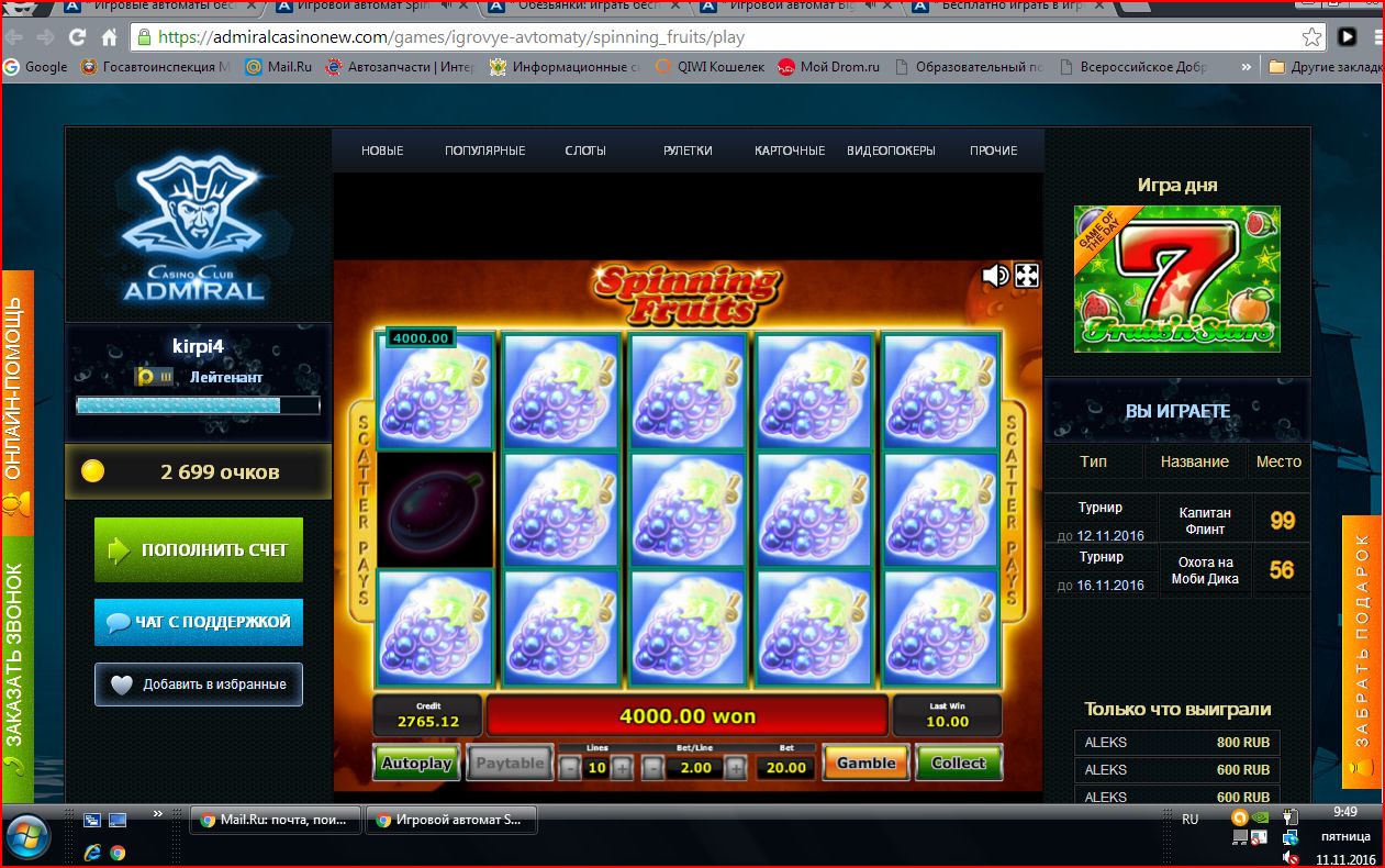 Неактивно Конкурс скринов от казино Адмирал: 3000Р + 70ФС каждую неделю!