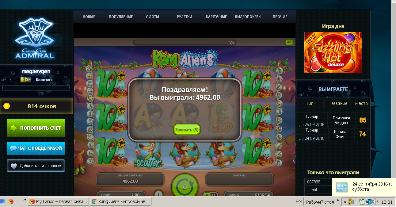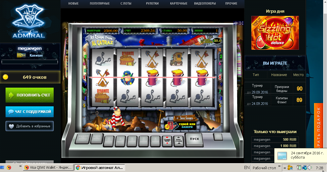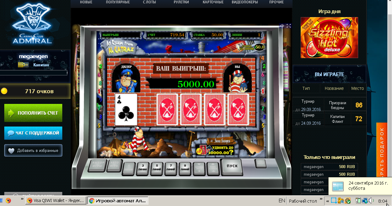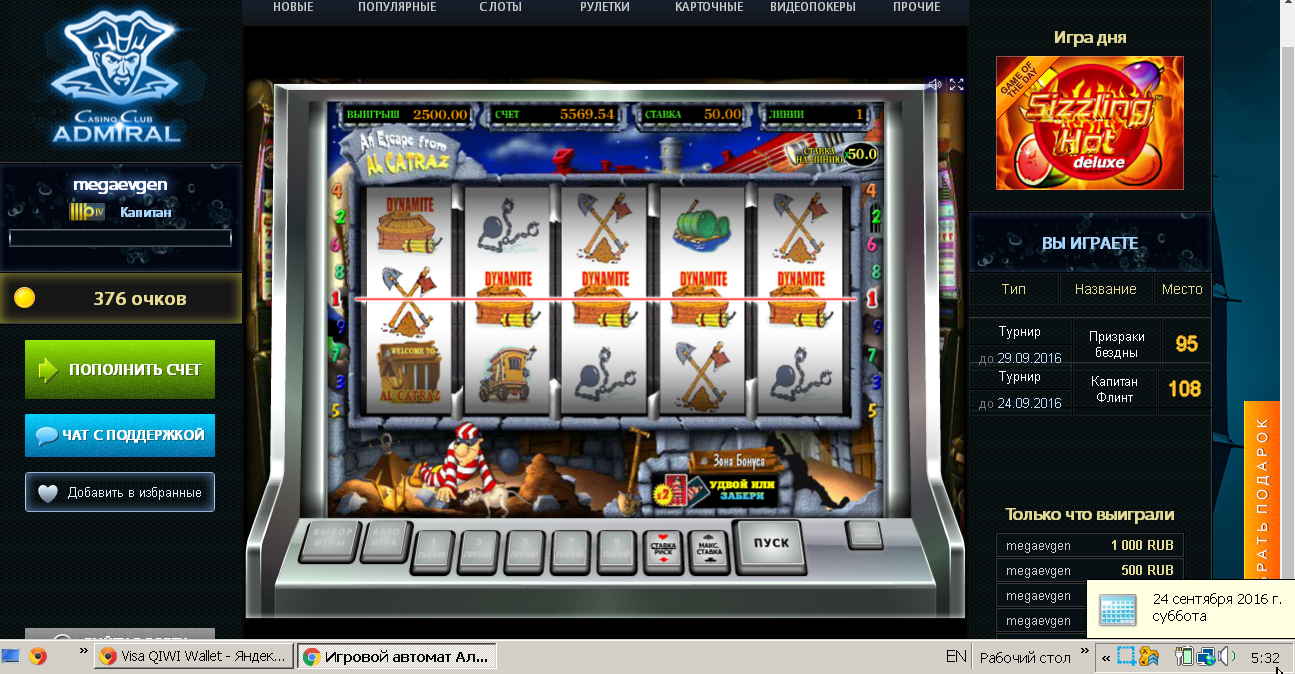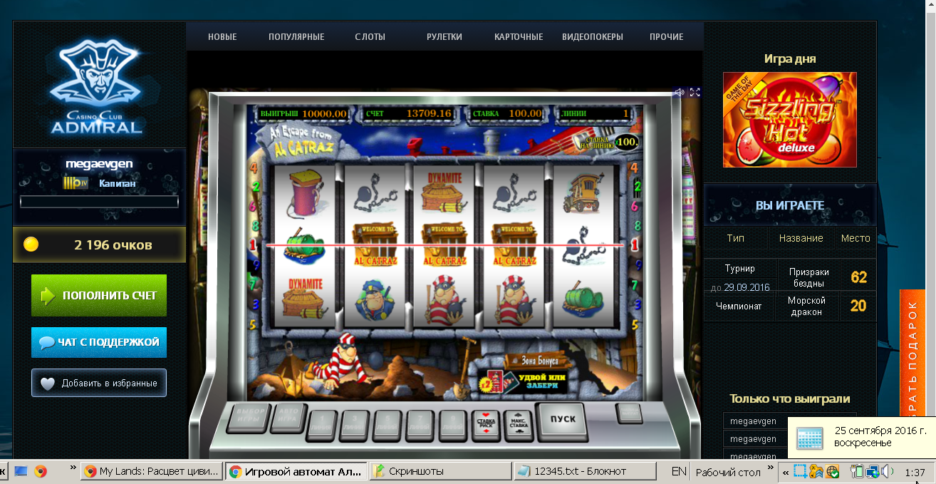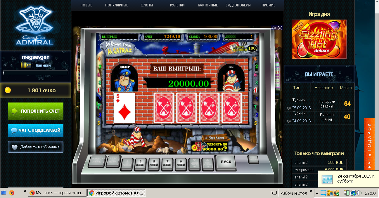Спасибо Адмиралу за щедрость. А вот лучший скрин у меня был 200 к 1 в Алькатрас(ставка 100, выигрыш 20000)Четвёртая неделя конкурса скриншотов завершена!