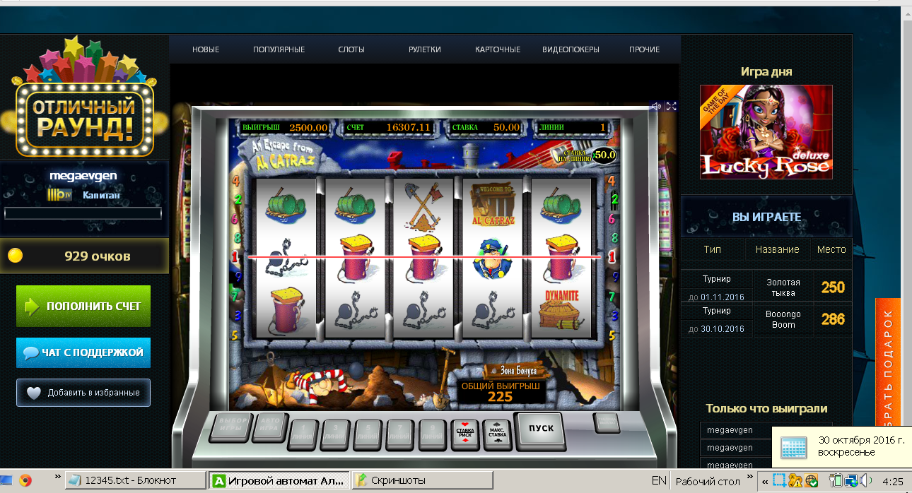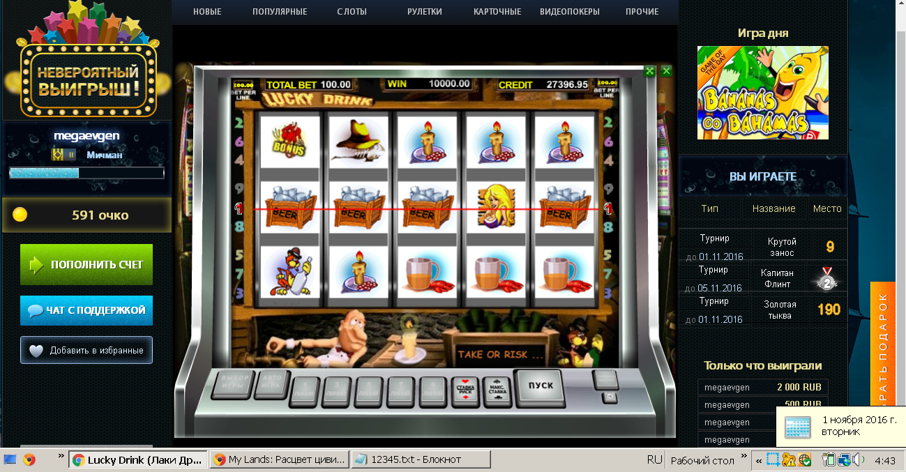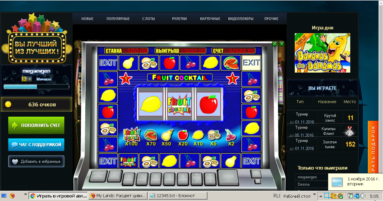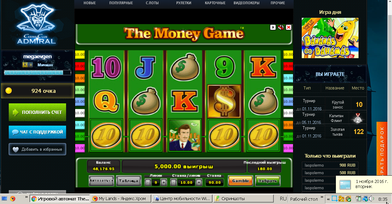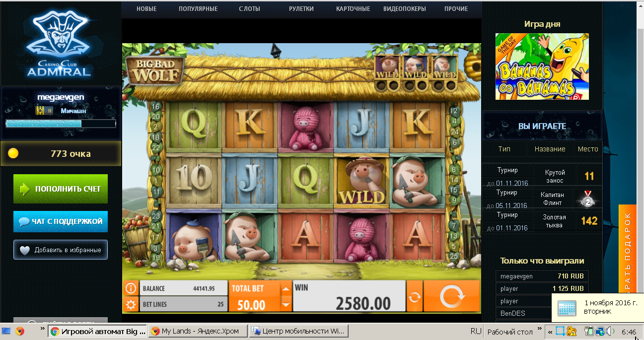 Наибольшее число баллов набрал Megaevgen, а игра The Money Game принесла ему наибольшее соотношение выигрыш/ставка - 262:1, этот занос запечатлён на скрине: