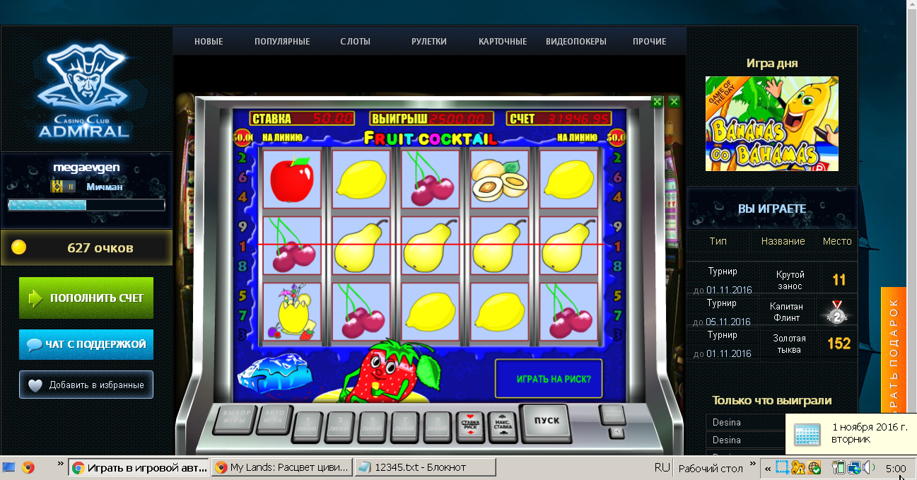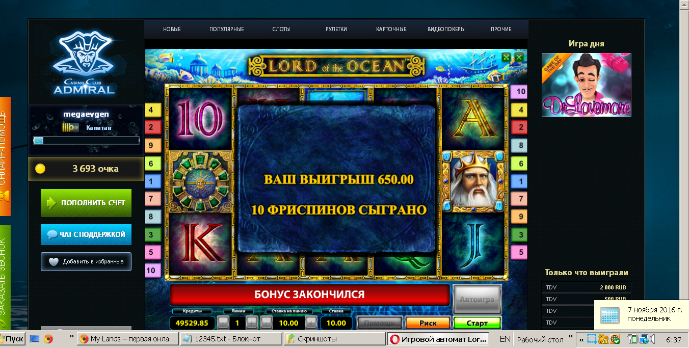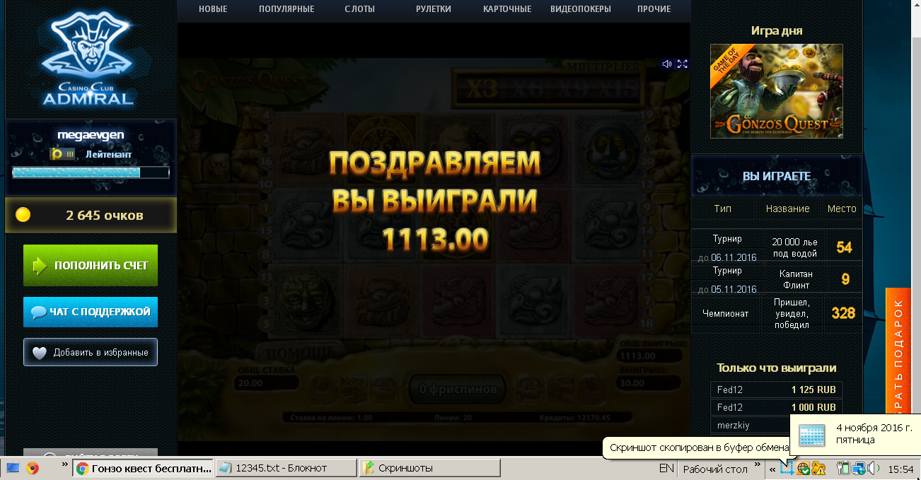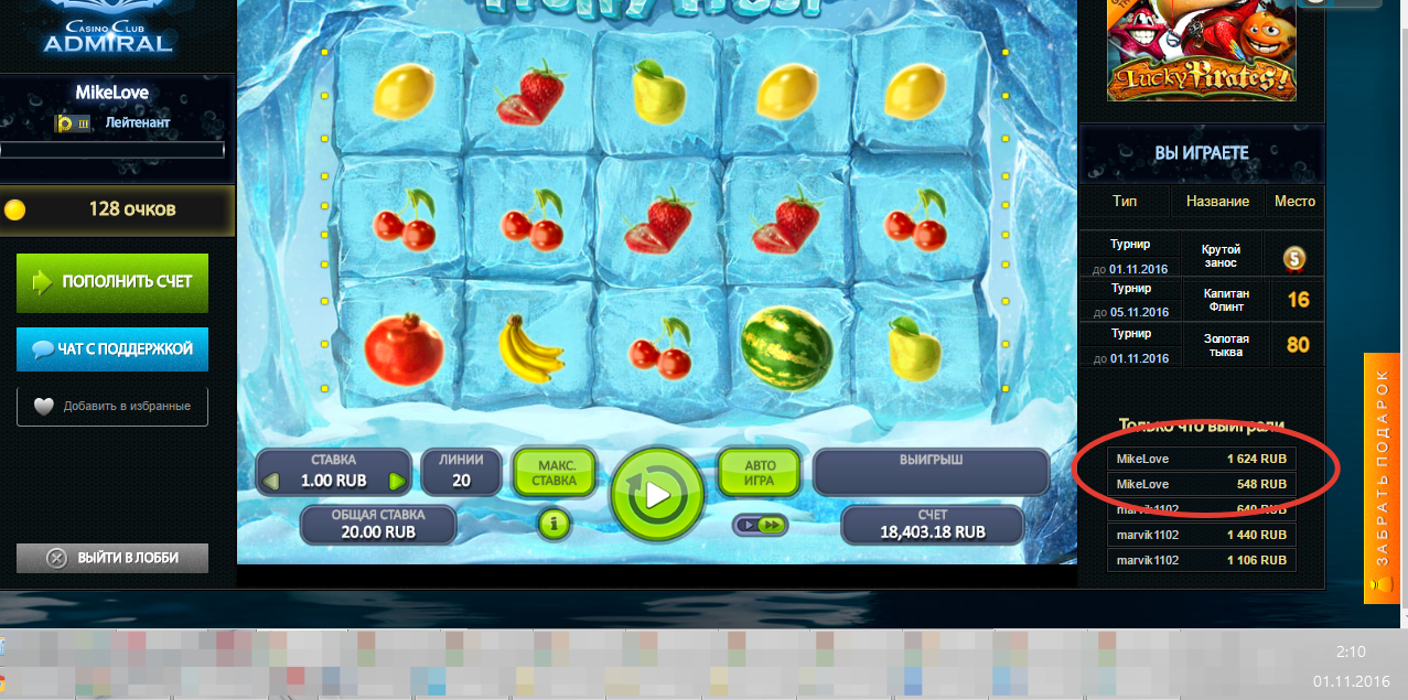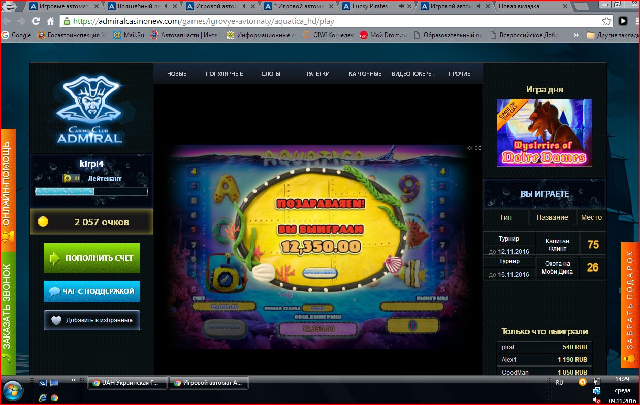 Завершилась девятая неделя конкурса скринов от казино Адмирал, а призовые места достались самым активным игрокам!