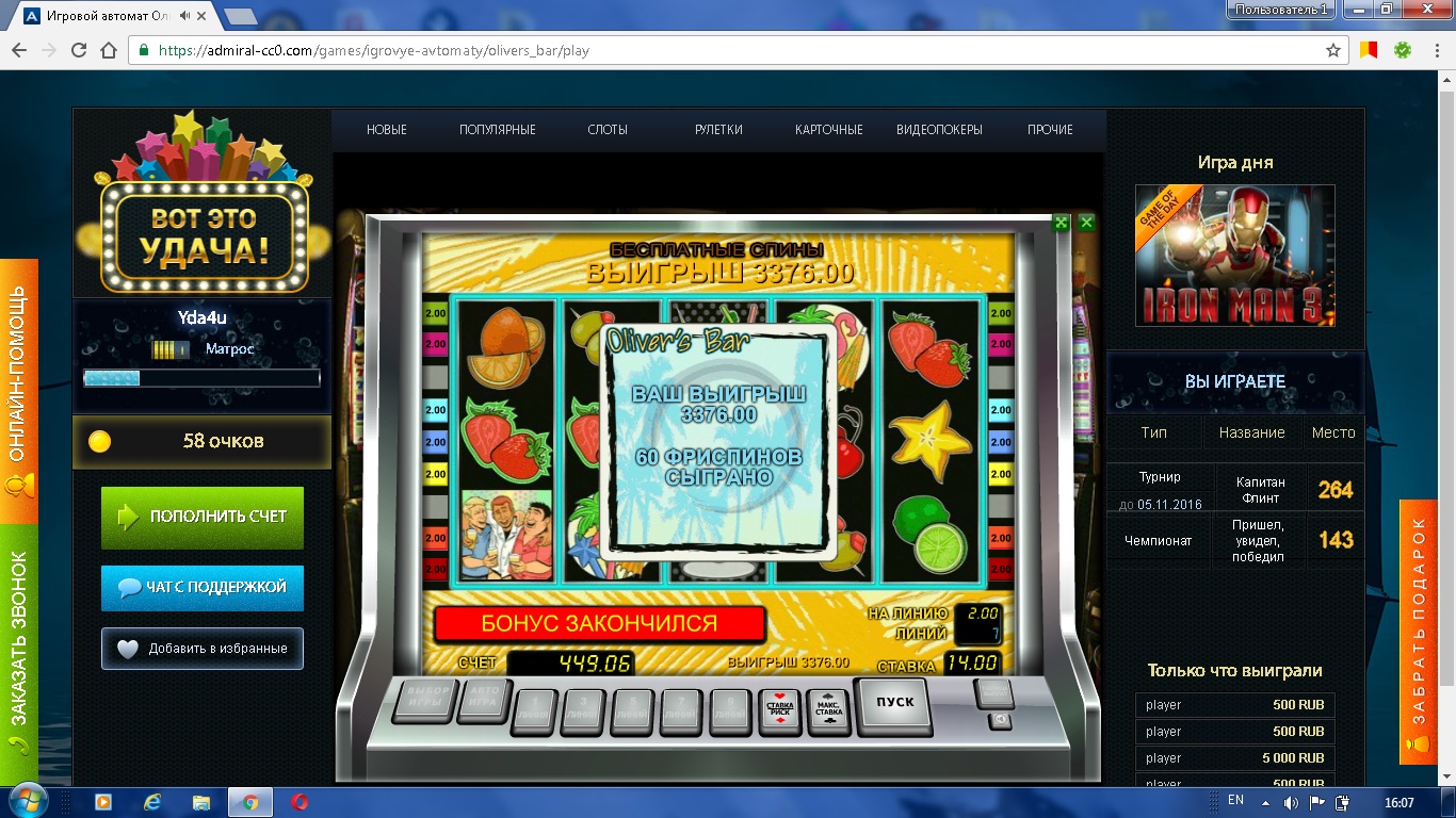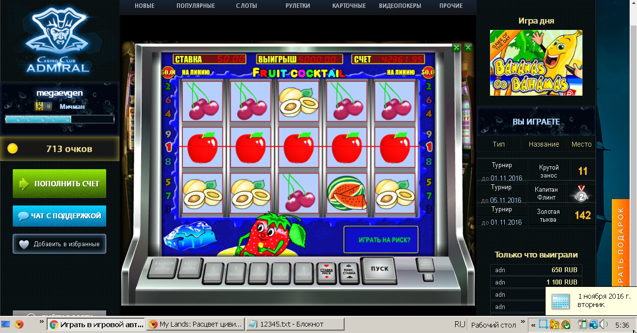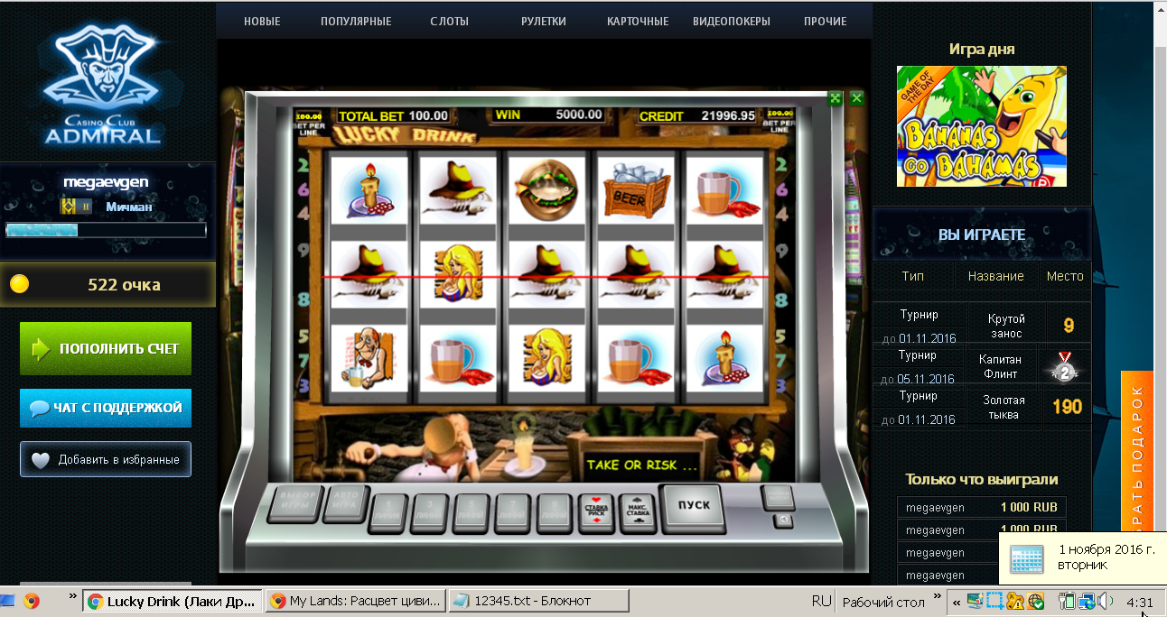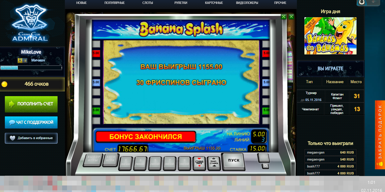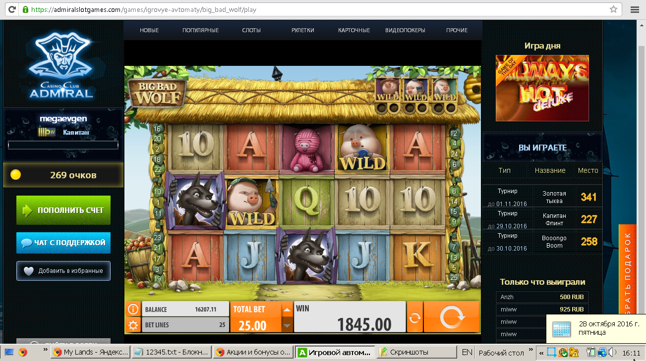 Завершилась девятая неделя конкурса скринов от казино Адмирал, а призовые места достались самым активным игрокам!
