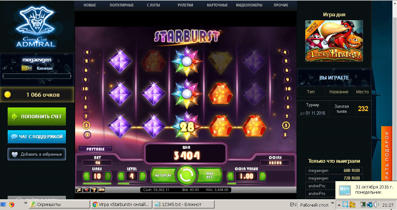 Неактивно Конкурс скринов от казино Адмирал: 3000Р + 70ФС каждую неделю!