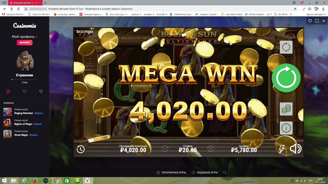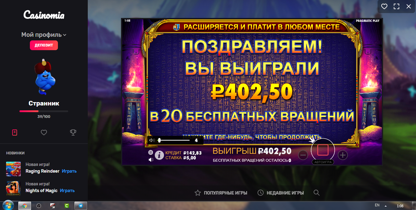 Забери бонус 900 FS + 225% на депозит - промокод CASINOMY