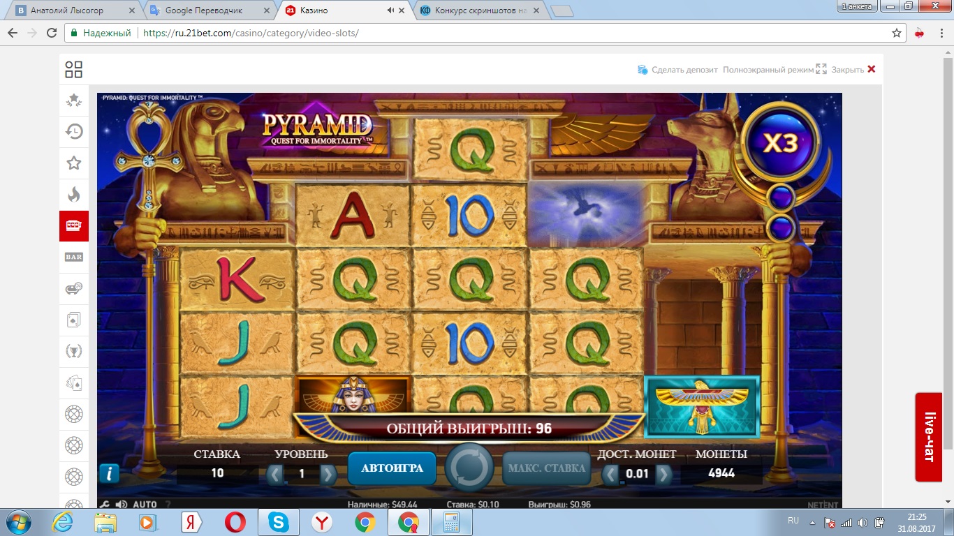 Конкурс Конкурс скриншотов на 500$ от 21Bet Сasino