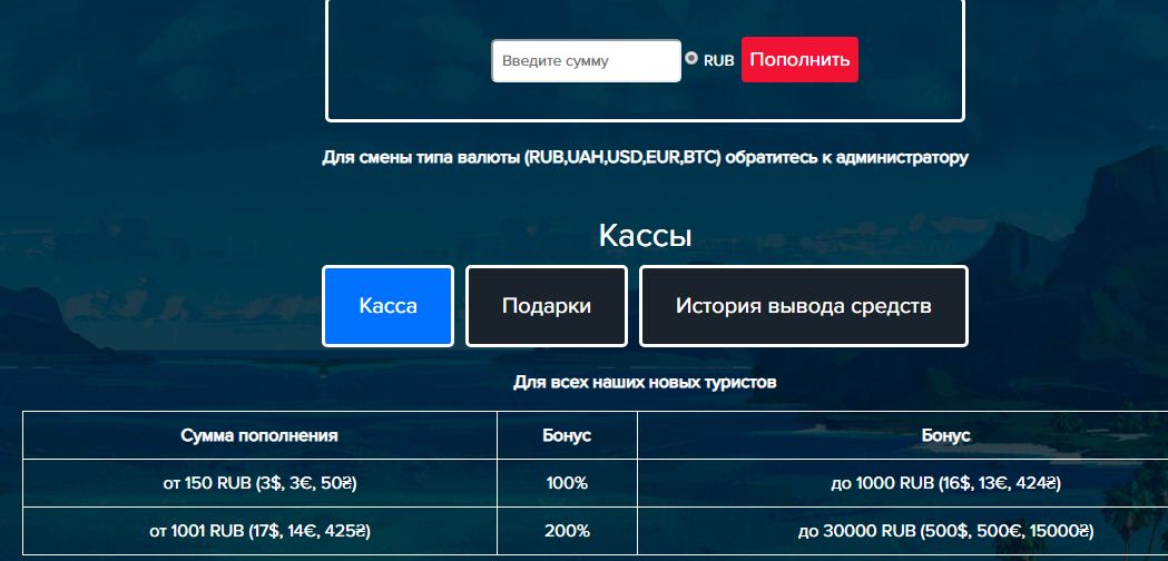 деп 1к+2к бонус = 3к играл по 10р - пустышка!!! макс.бонус х47короче попробовал ,х50 видимо здесь по праздникам ,х 25 даже не увидел.