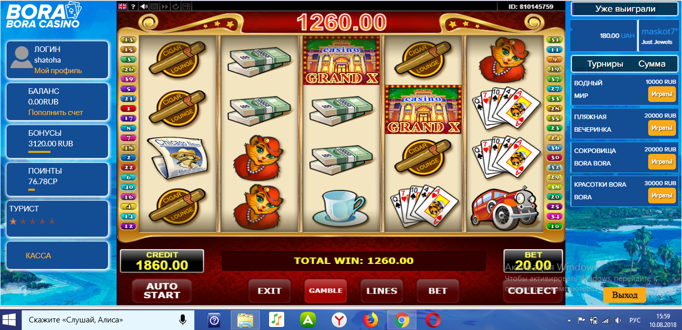 Ясно что за казино) Просто бред какой-то. С перво уже показали себе казино на что способна.Есть там такое, в кассе посмотри (