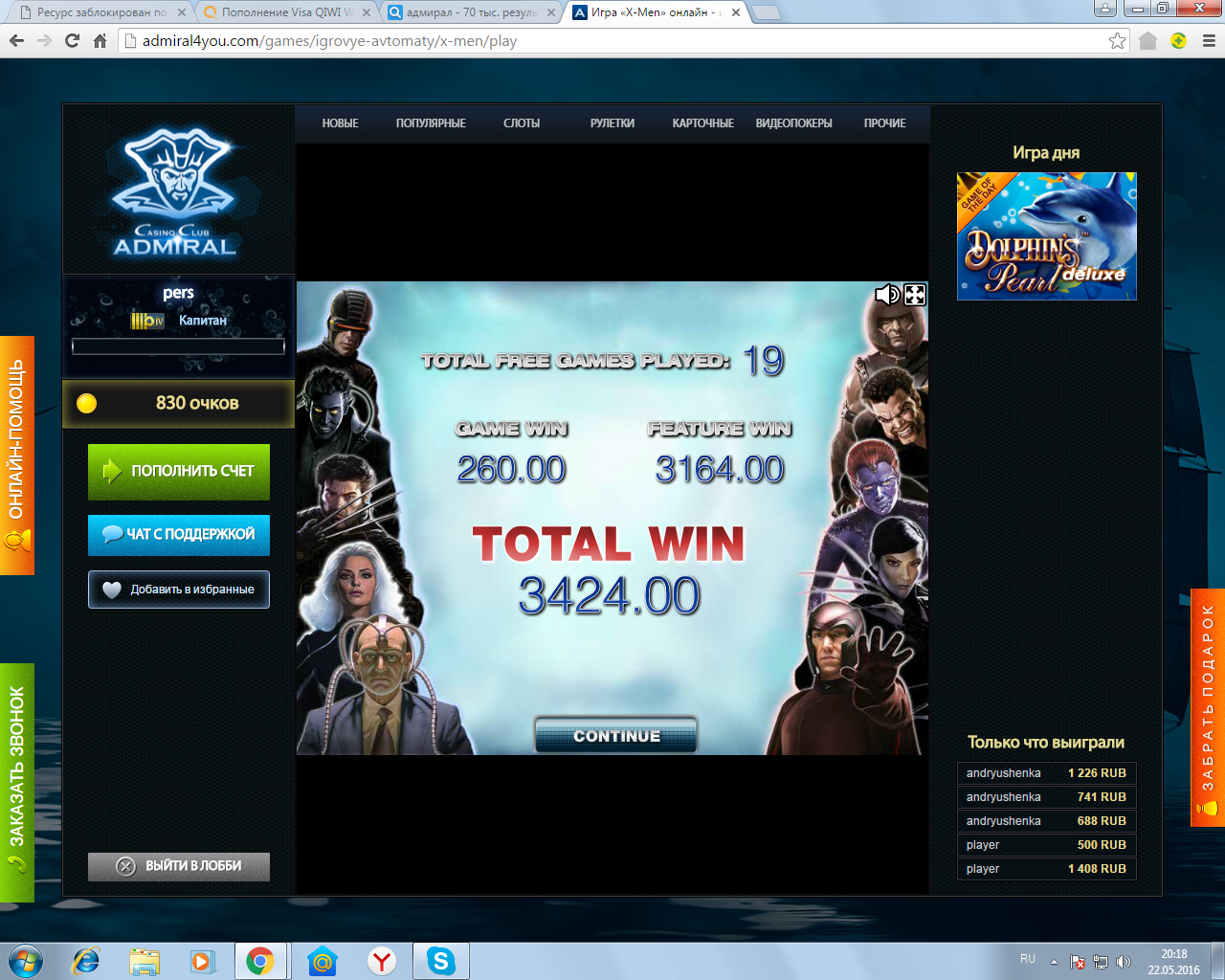 Не теряя времени даром, мы объявляем конкурс скриншотов от казино Адмирал. В нём могут принять участие все игроки казино.