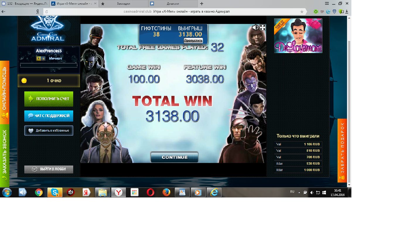 Да .Это и есть тот же скрин. Я к тому это сделал ,что все это можно подставить и время и дату. Просто есть ай ди и наверняка есть история игр ,где можно это проверить. Другое дело просто откинуть его и не заниматься этим. Это проще. Не думаю,что это правильно. Да бог с ним . Таких соотношений можно и по первой ставке наловить. Бывало и часто...тут уж просто действительно 1 к 480 по моему. Это не часто но бывало и лучше. Как -то осадочек остается все равно к такому отношению.Я за честную игру всегдаБез претензий, но смахивает на фотошоп твоего прежнего скрина, да и времени и лога адмирала не видно. Я тоже "обжигался" на правилах и, кстати, тоже с датой косяк был, тогда выиграл скрин с меньшим коэф-том. Но сам виноват, правила не внимательно прочитал тогда...