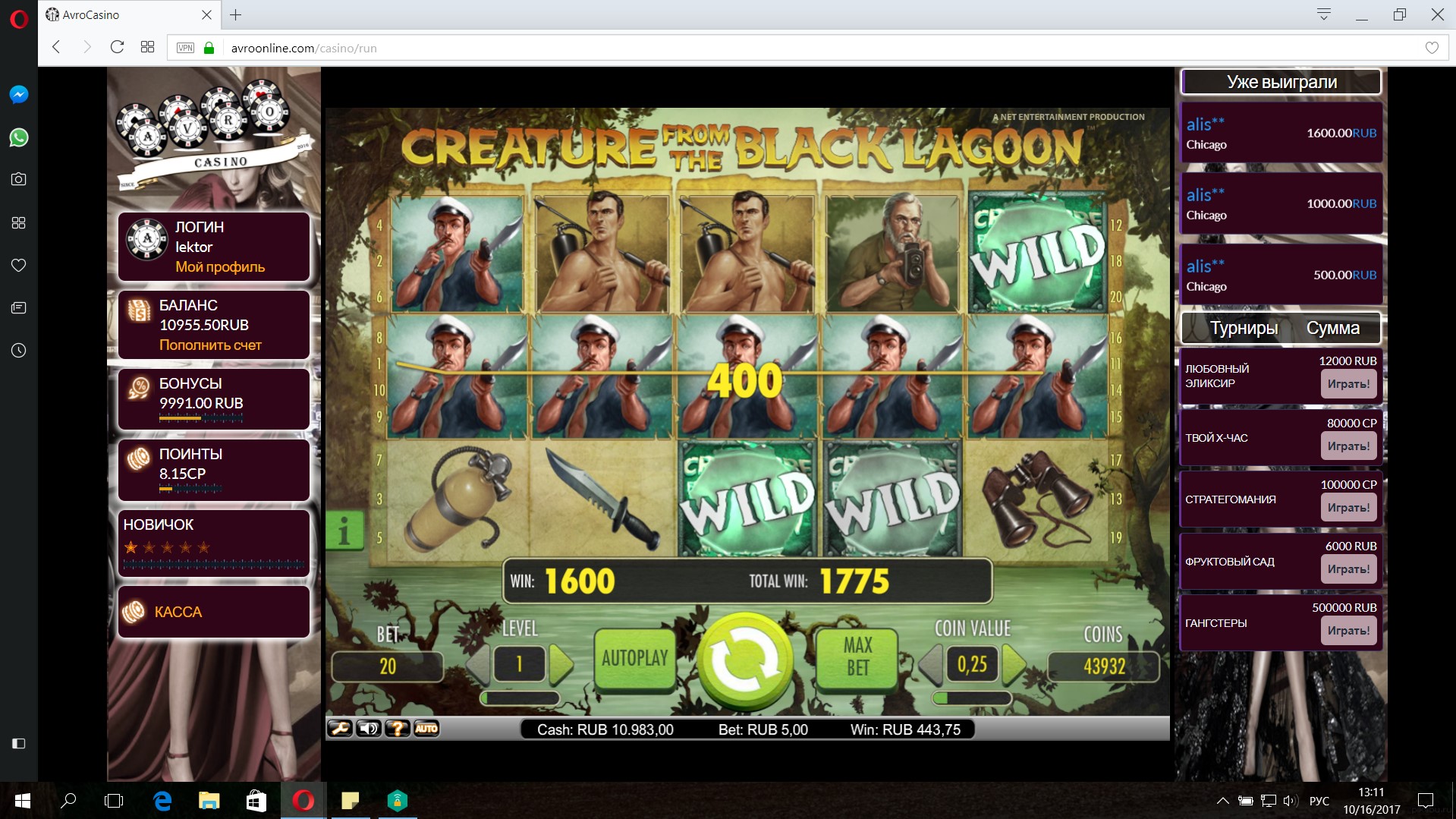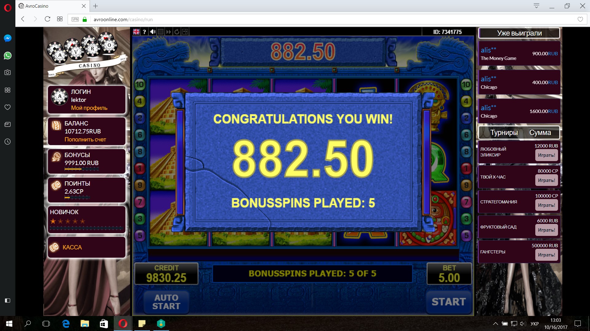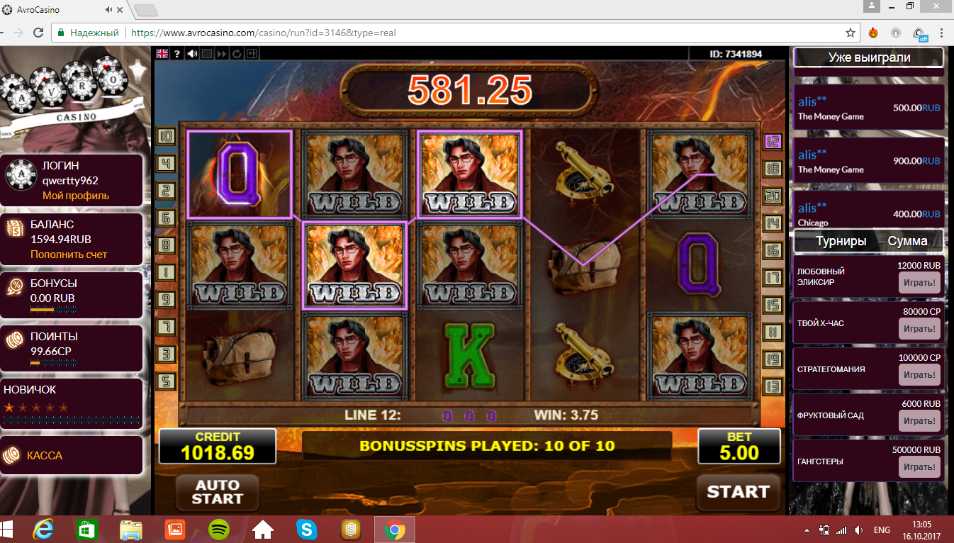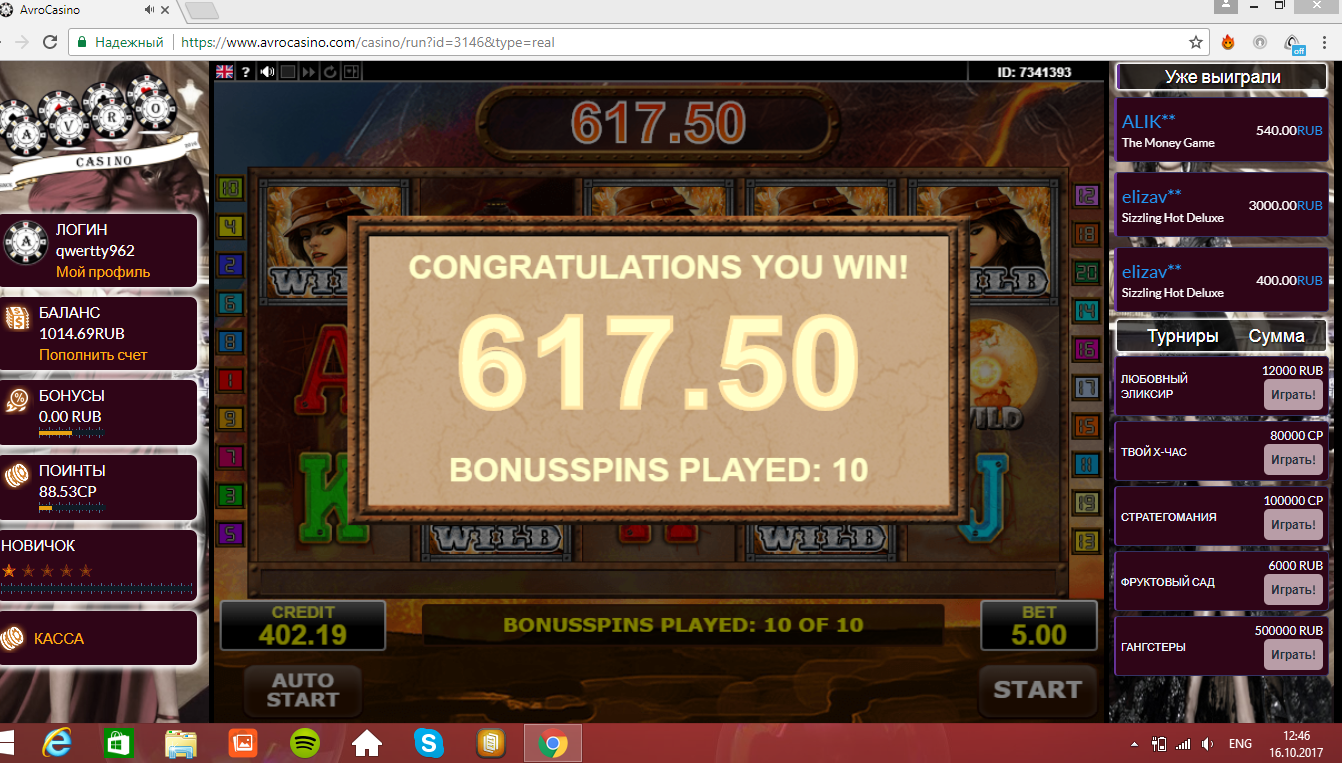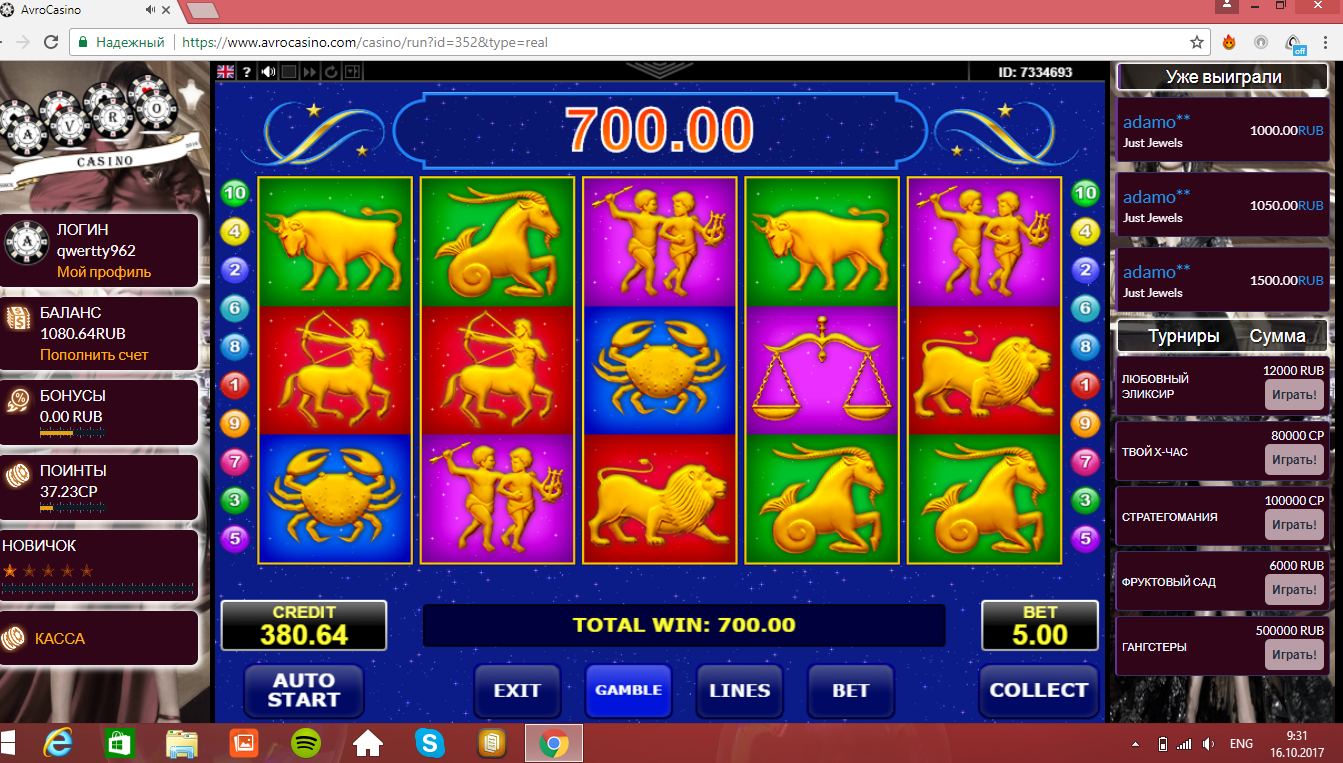 · На скриншоте должно быть видно, что он сделан в казино авро, а так же дата и время