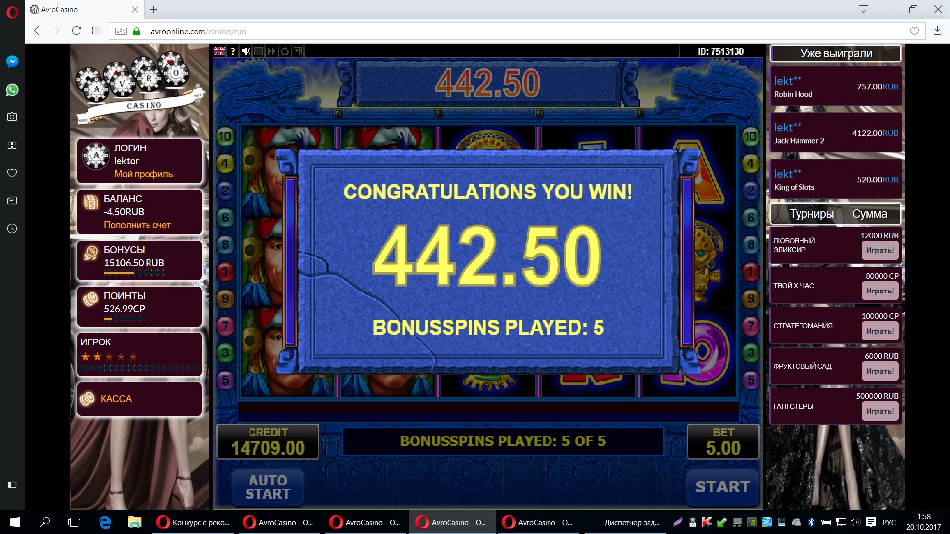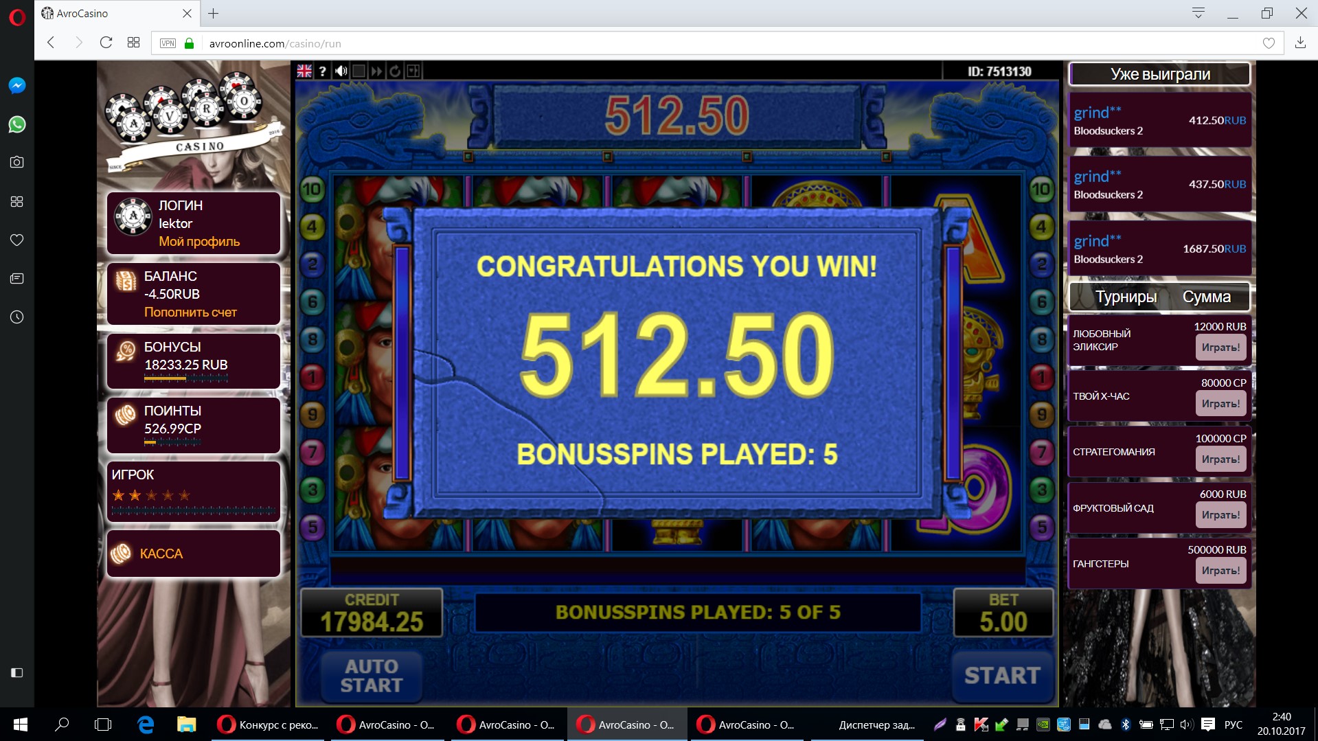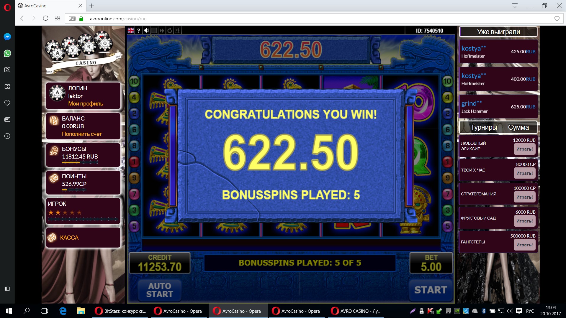 Kababanga 62+77+102+87+/50+50+50+50+50+53+101+104+120+74+60+57=1147