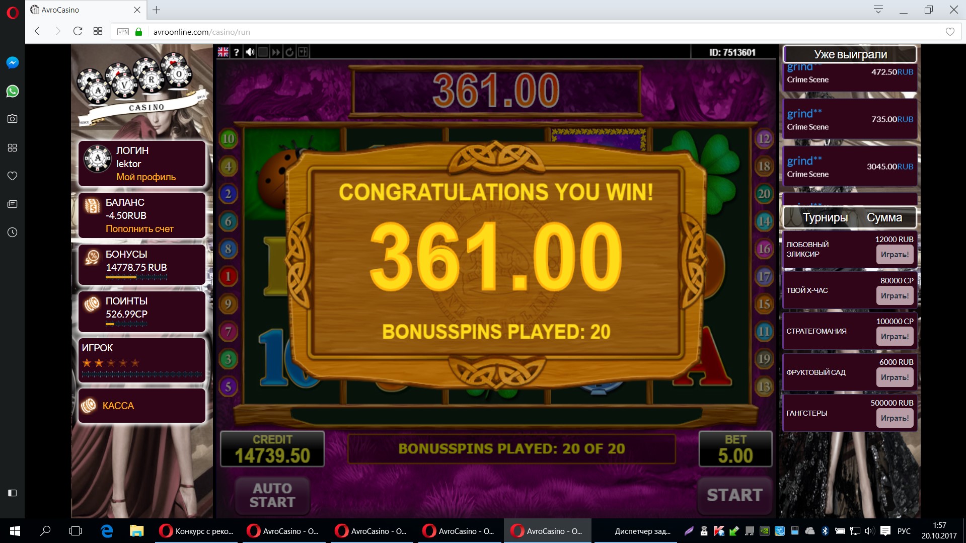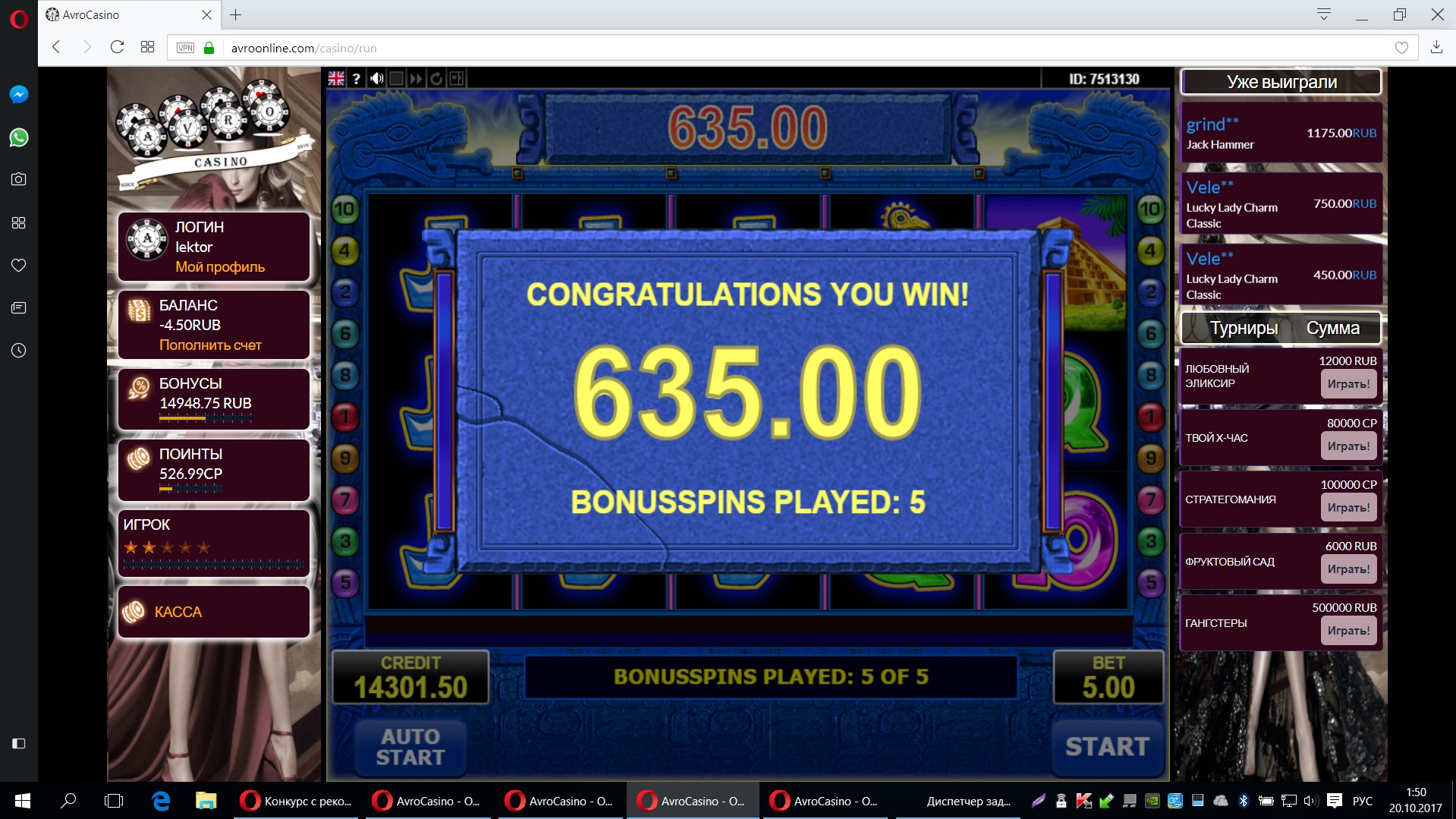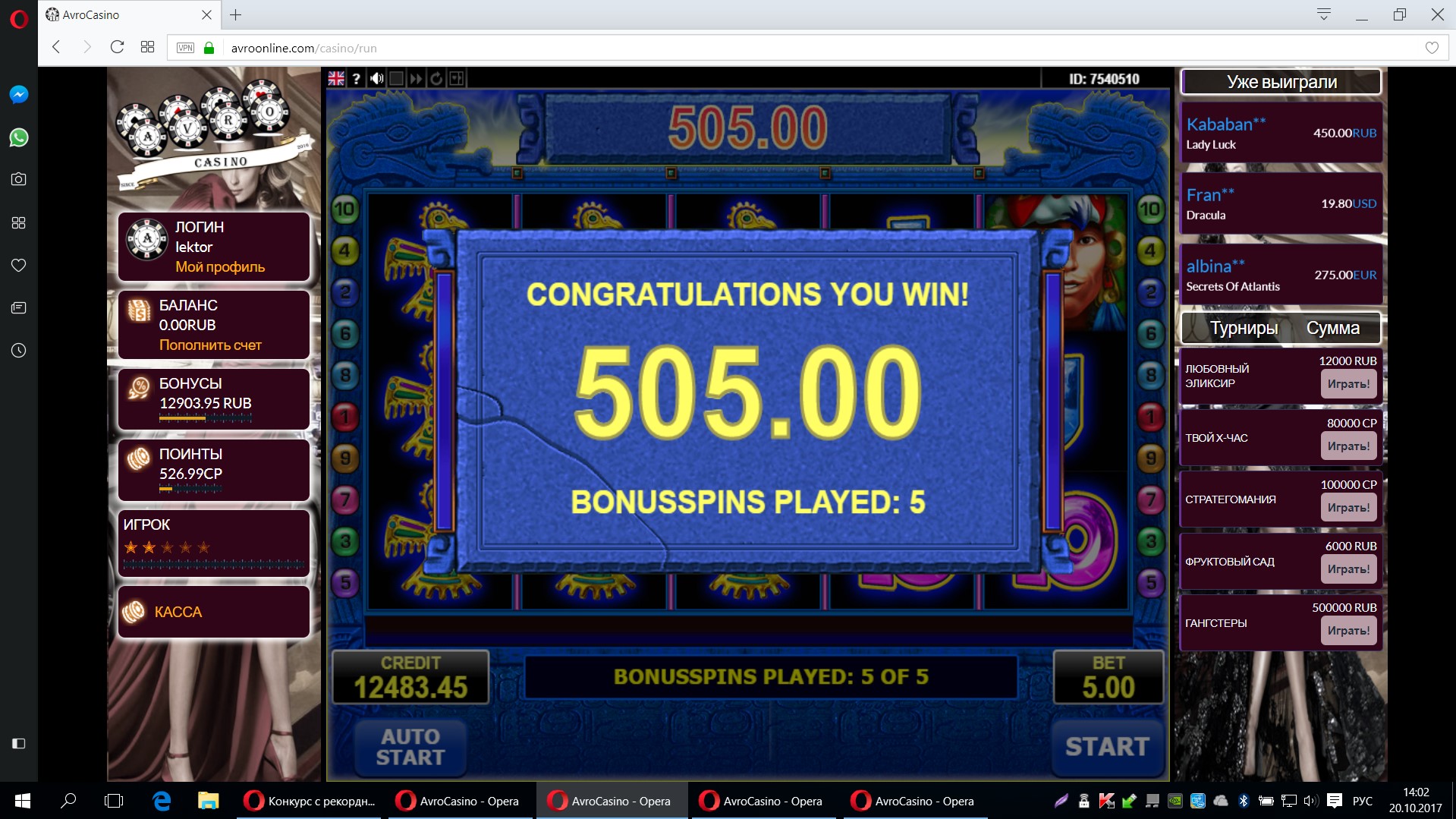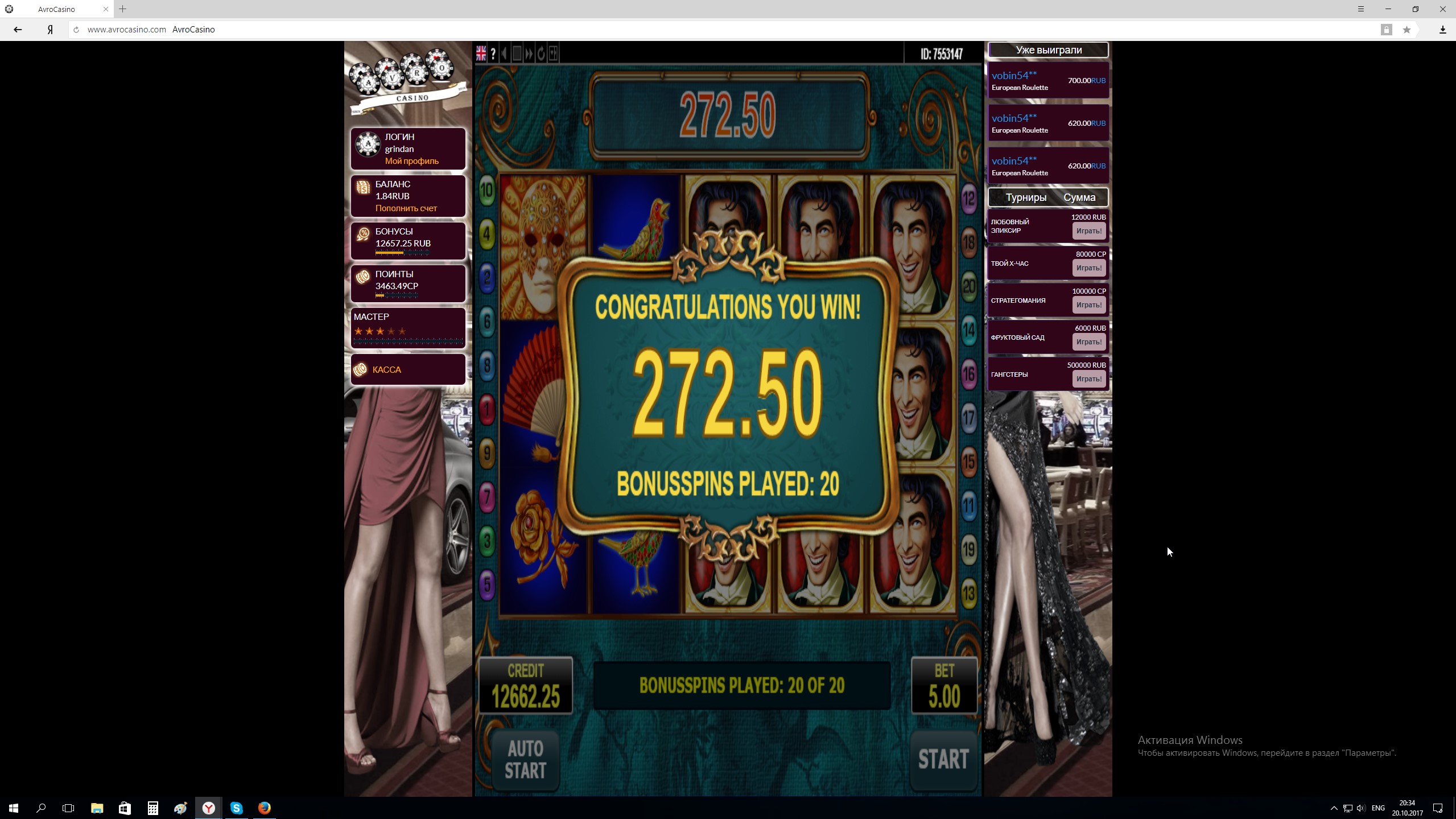 Kababanga 62+77+102+87+/50+50+50+50+50+53+101+104+120+74+60+57=1147