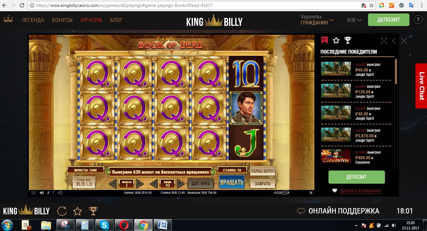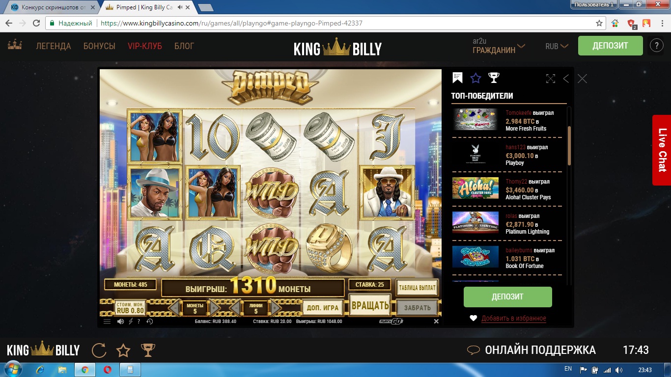 Конкурс Конкурс скриншотов от казино King Billy.Призовой фонд 33 000 рублей + 30 Фриспинов за регистрацию