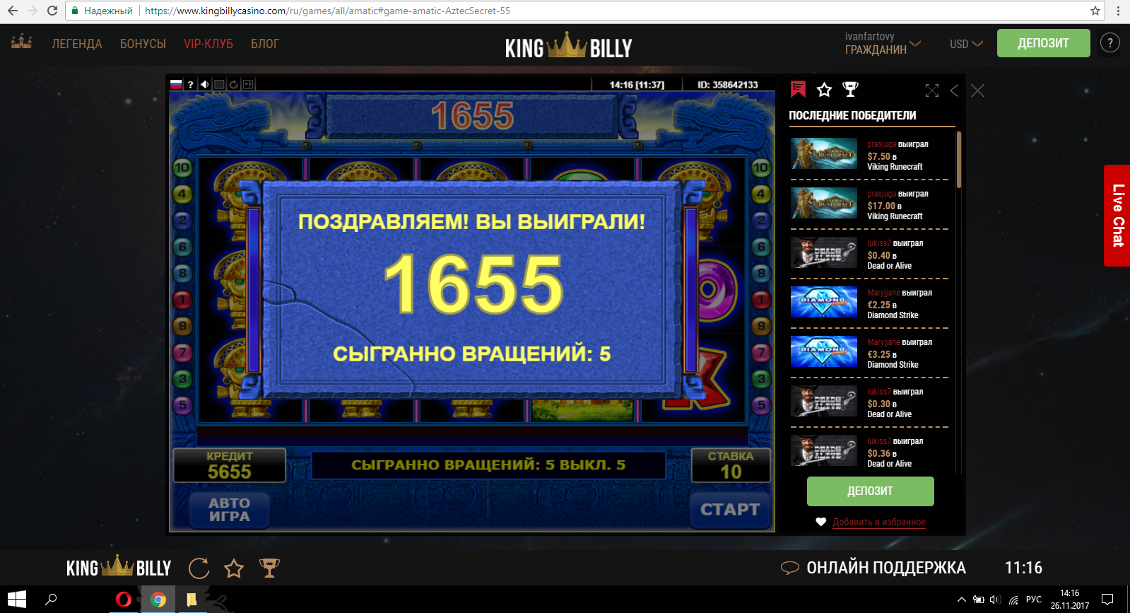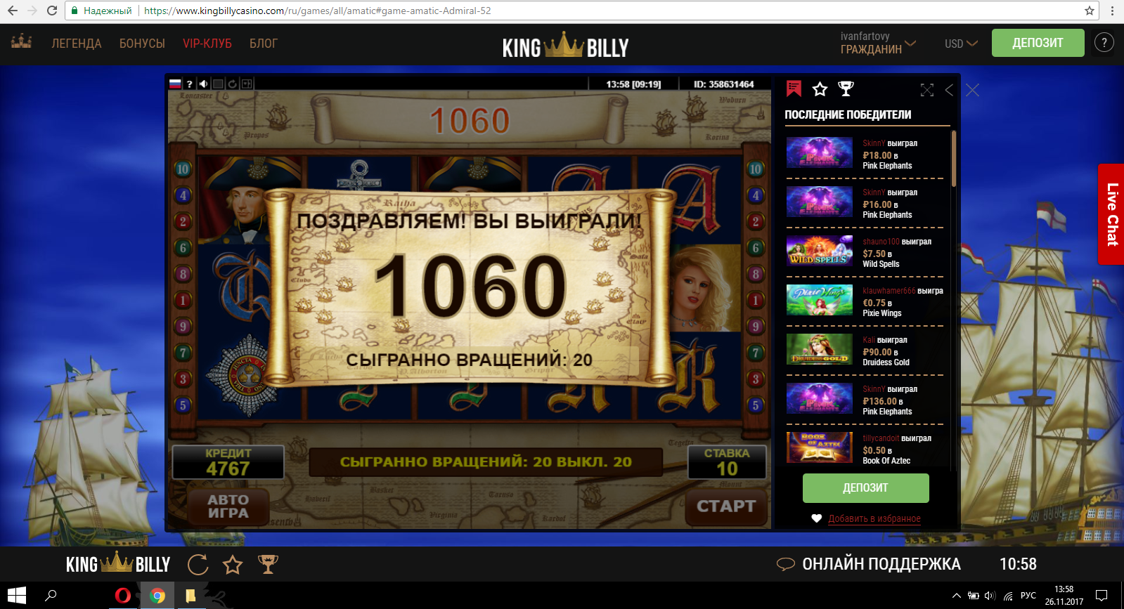 Конкурс Конкурс скриншотов от казино King Billy.Призовой фонд 33 000 рублей + 30 Фриспинов за регистрацию