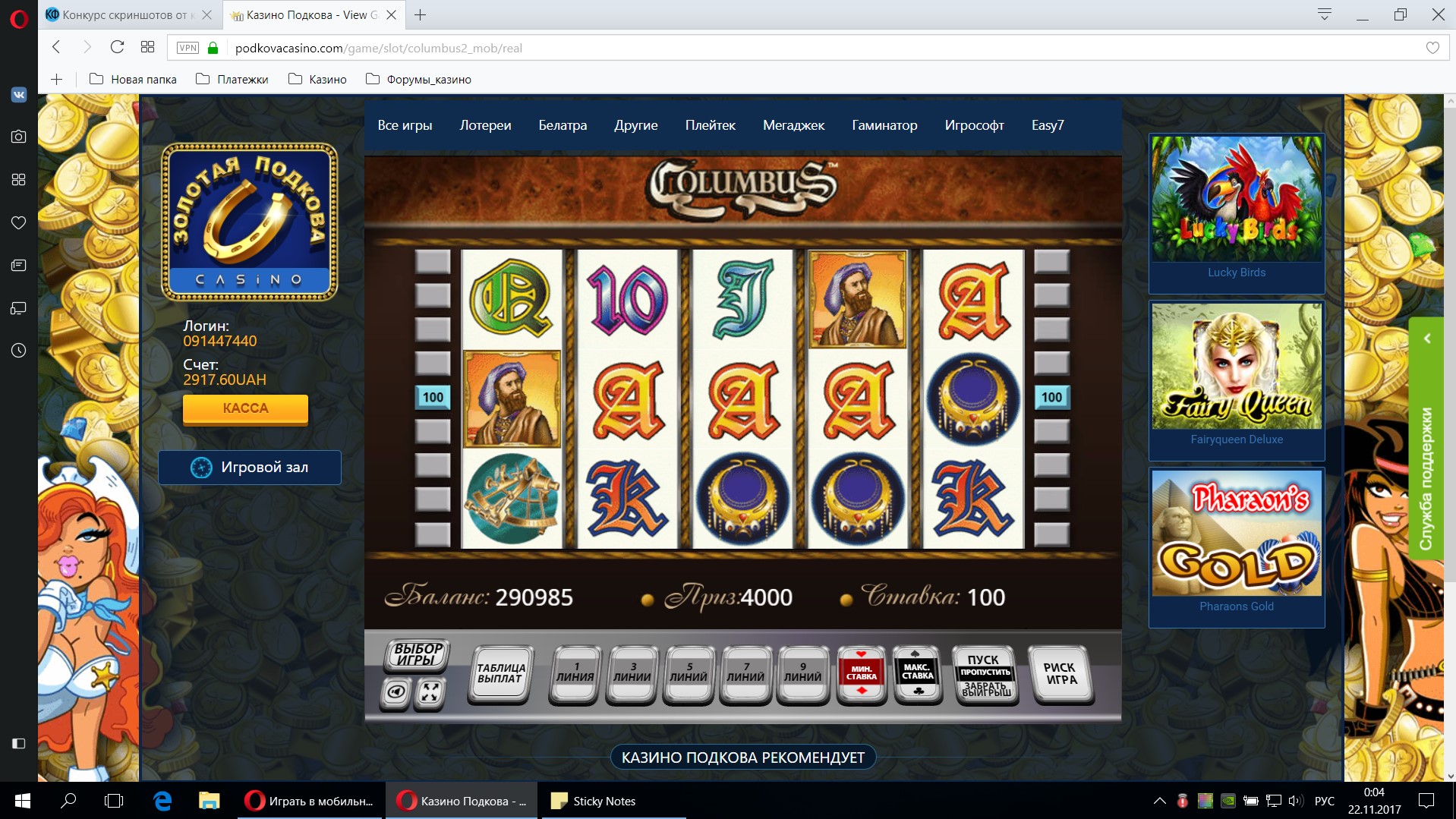 вот я и думаю, может ну его эту подкову, или проще ее сразу купить. Что то не радуют меня ваши скрины.Незнаю, у меня почти 1000 грн ушла по 1 грн, я незнаю как вообще можно поймать бонус в казино с такой отдачей.