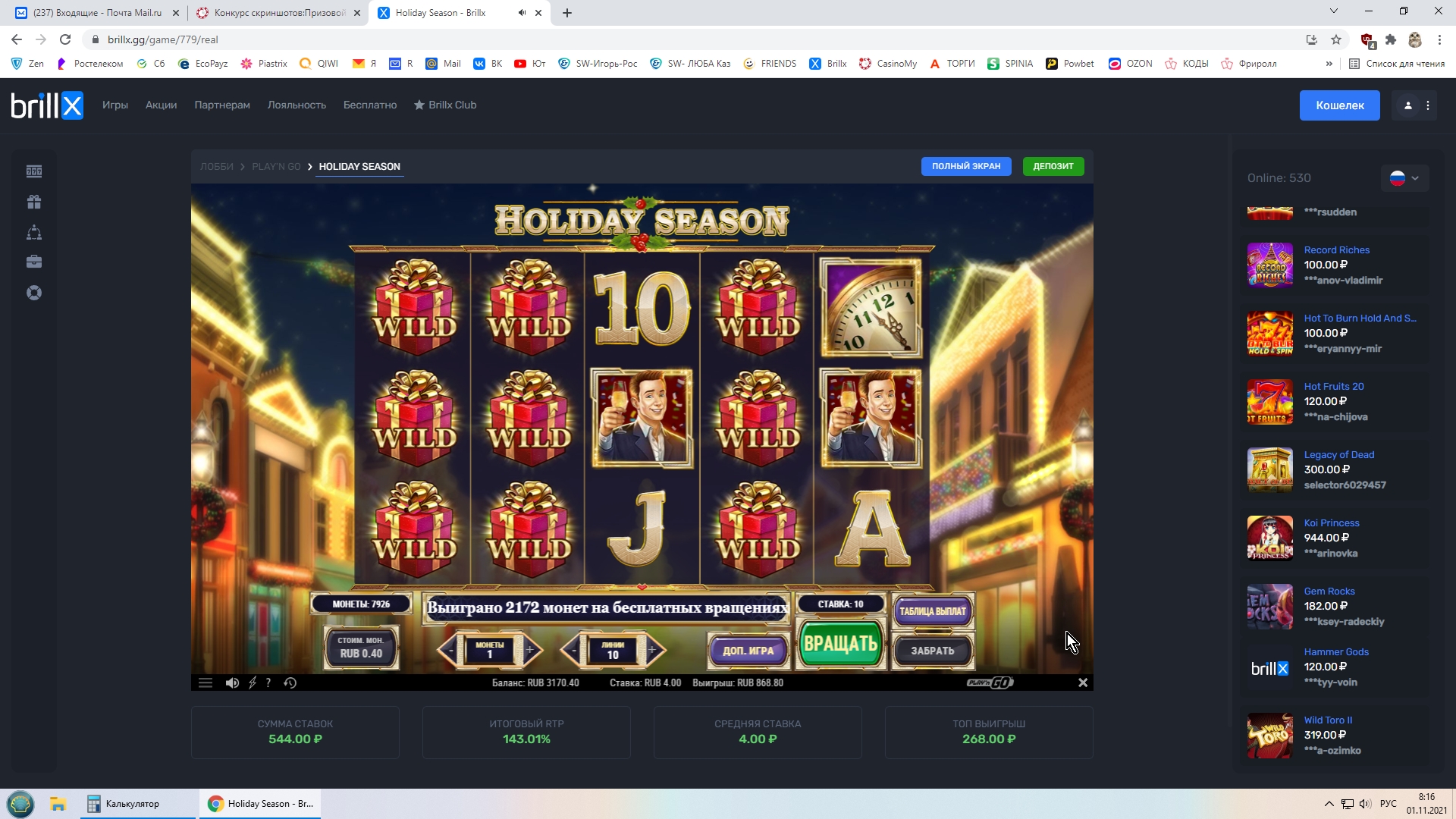как казино дня-то есть баллы набранные в этом казино-умножаются на 2(если вы поймали х50-они превращаются в х100 и тд)