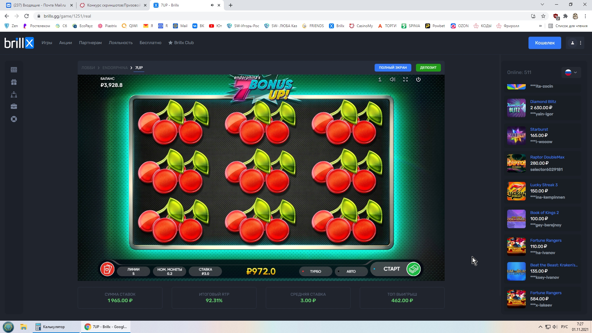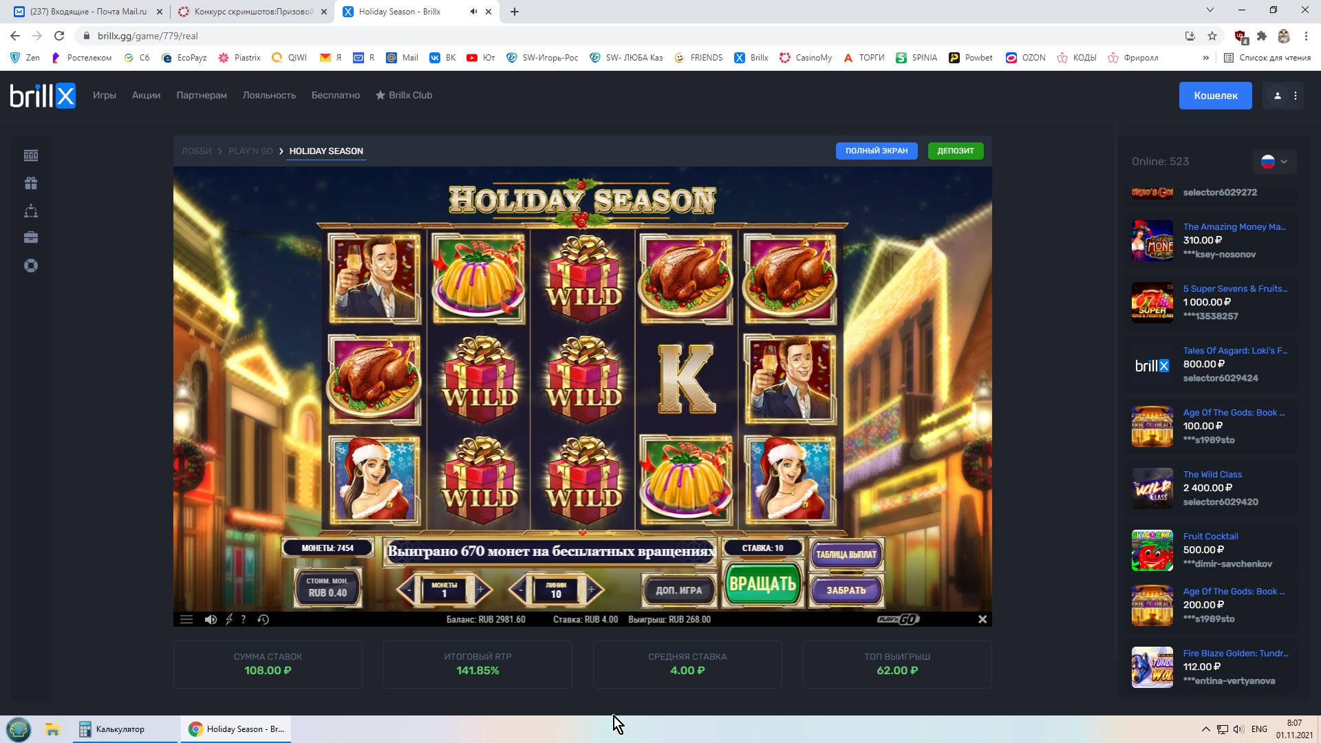 Информация для участников конкурса-с завтрашнего дня,а именно с 00-00 по мск 01.11.21 выбрано казино Brillx