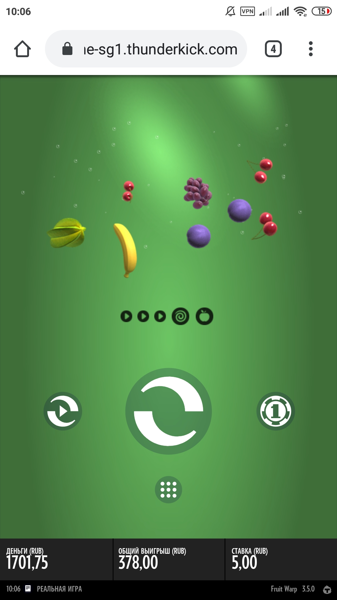 Ставка за спин должна быть не менее 5 рублей.