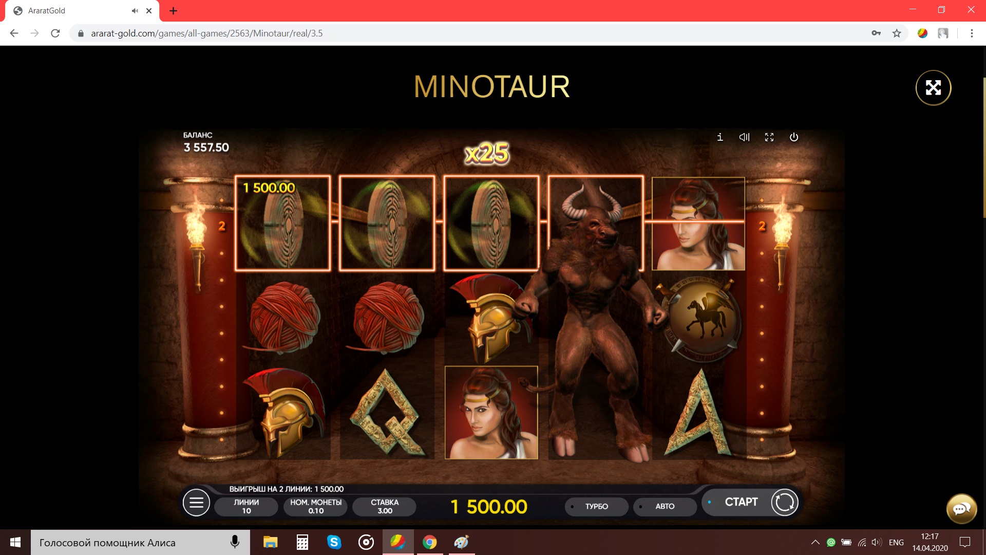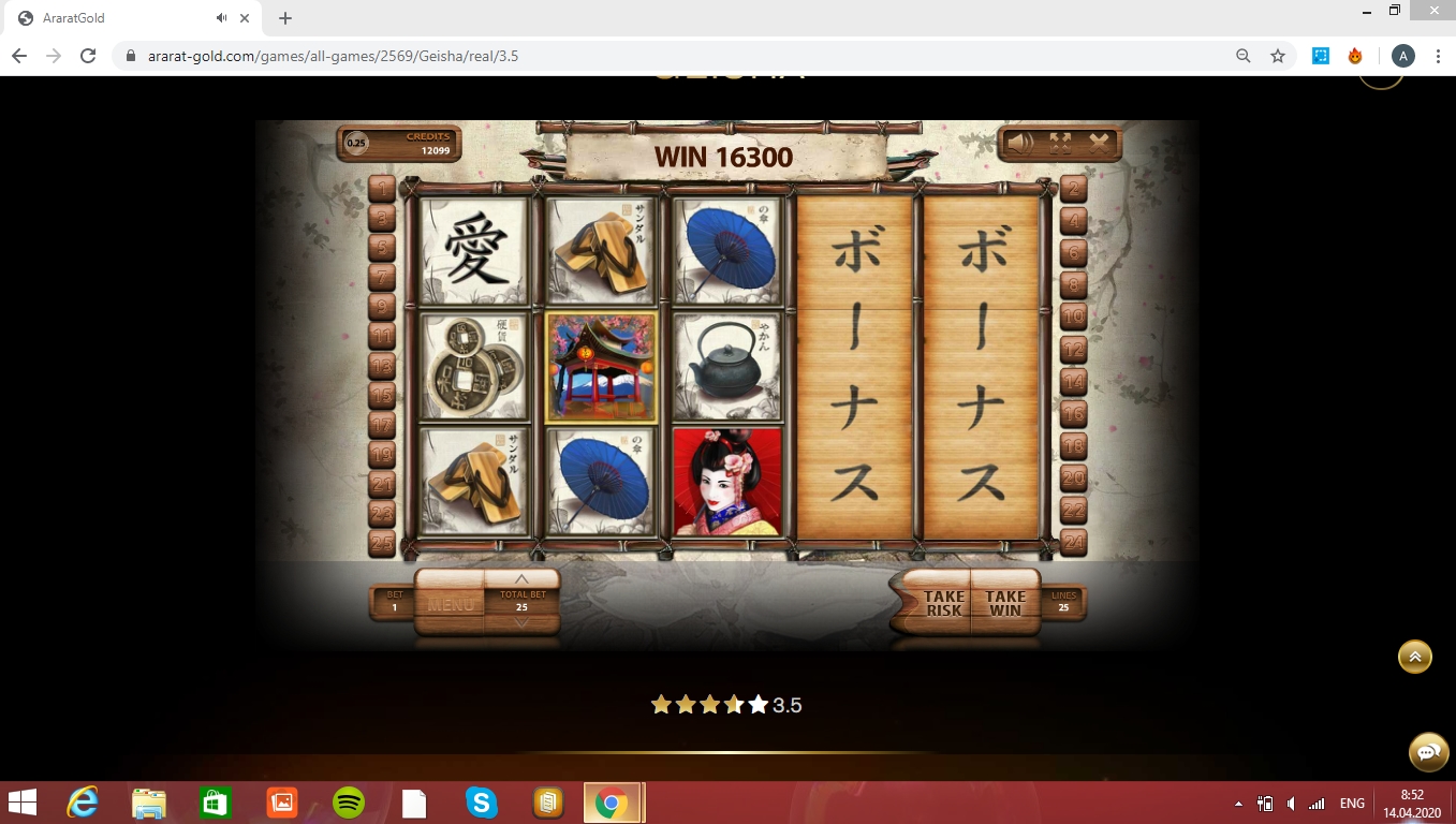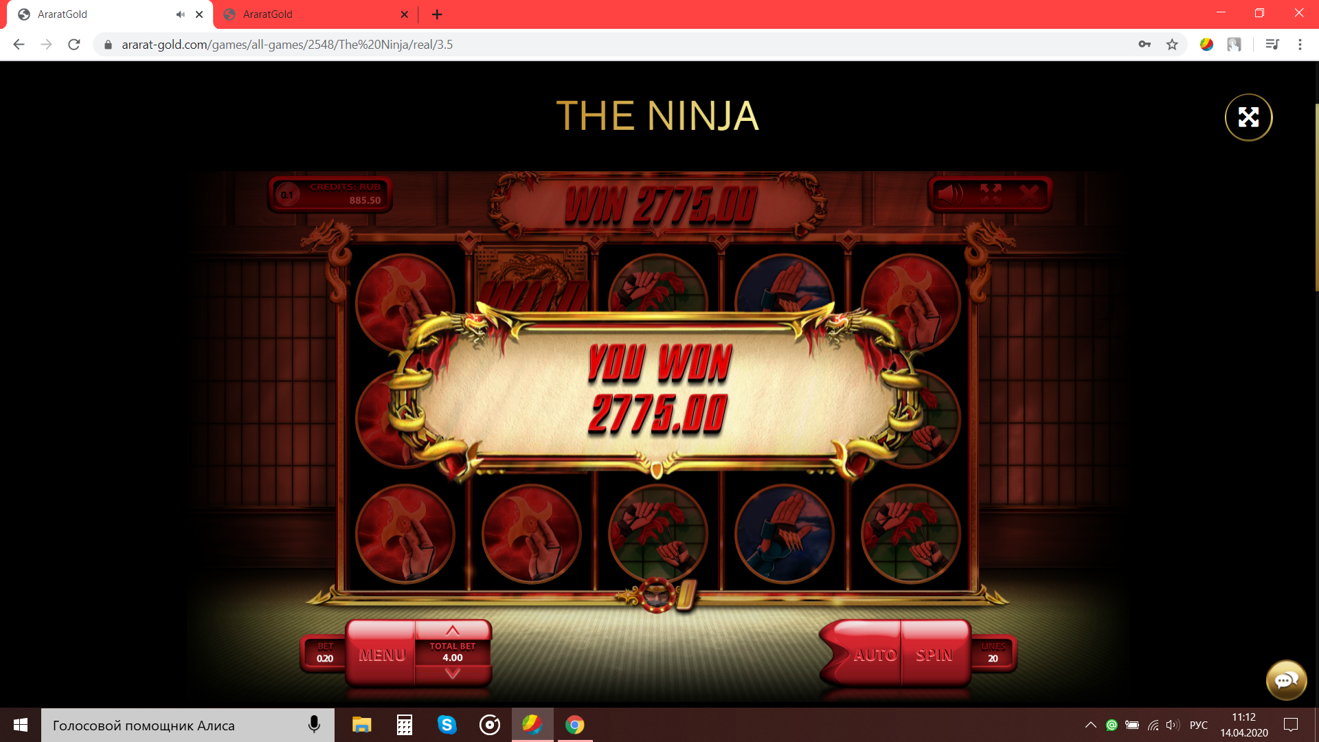 14. На скриншоте должно быть видно, что он сделан в Ararat Gold Casino, а так же дата, время, адресная строка браузера.