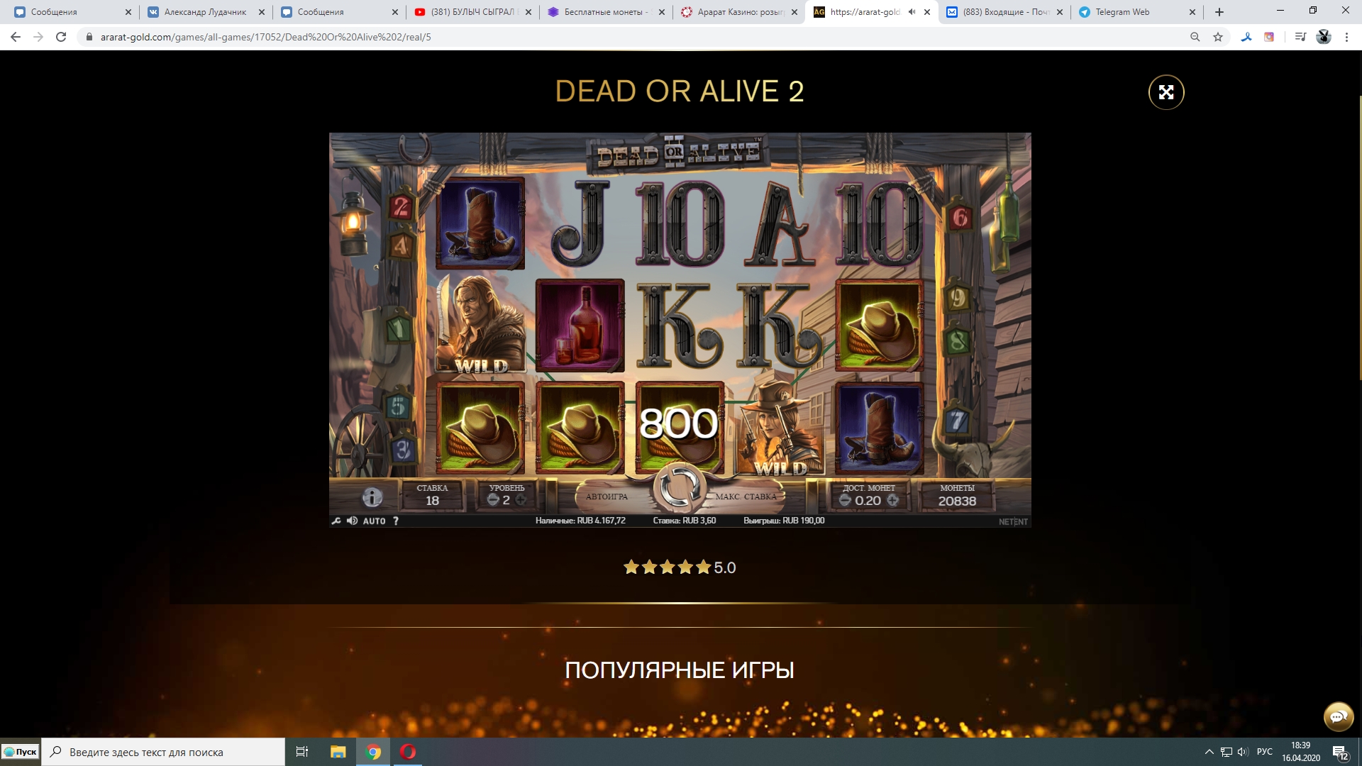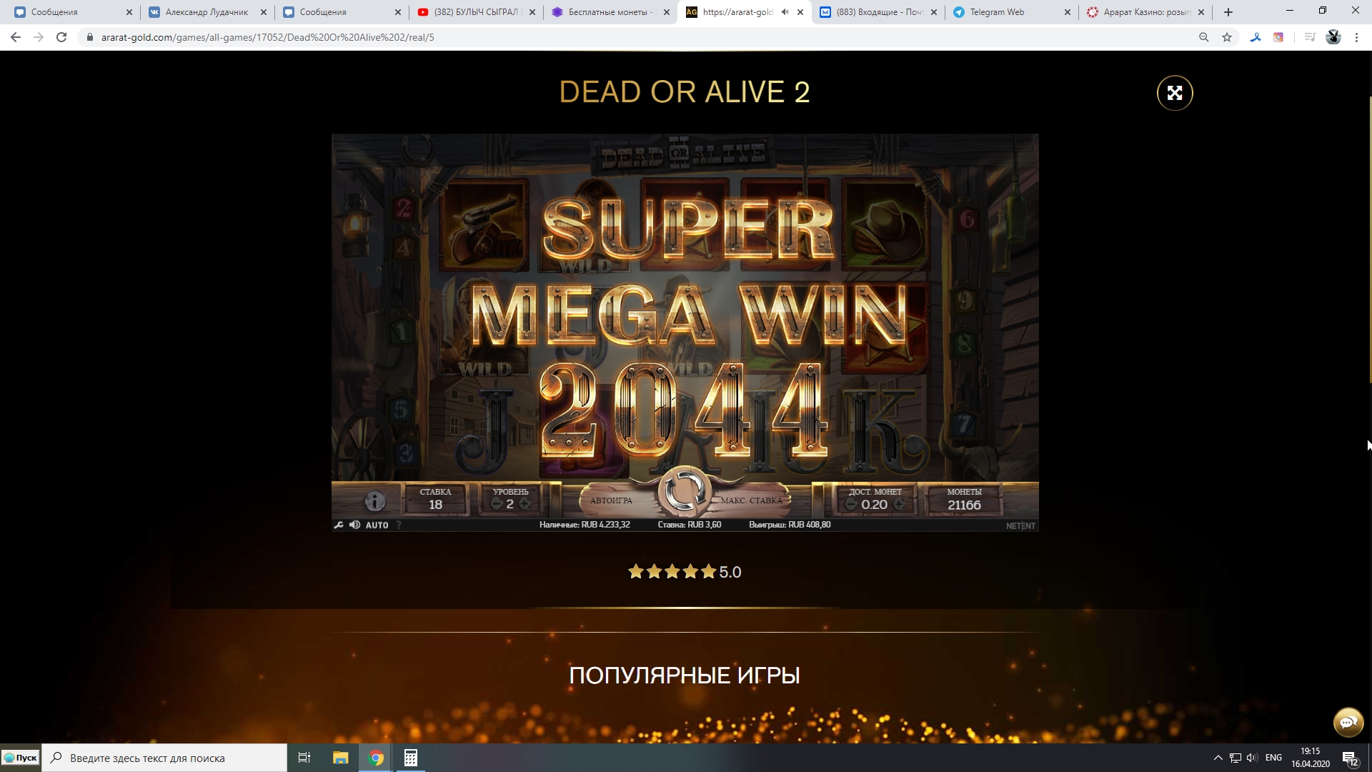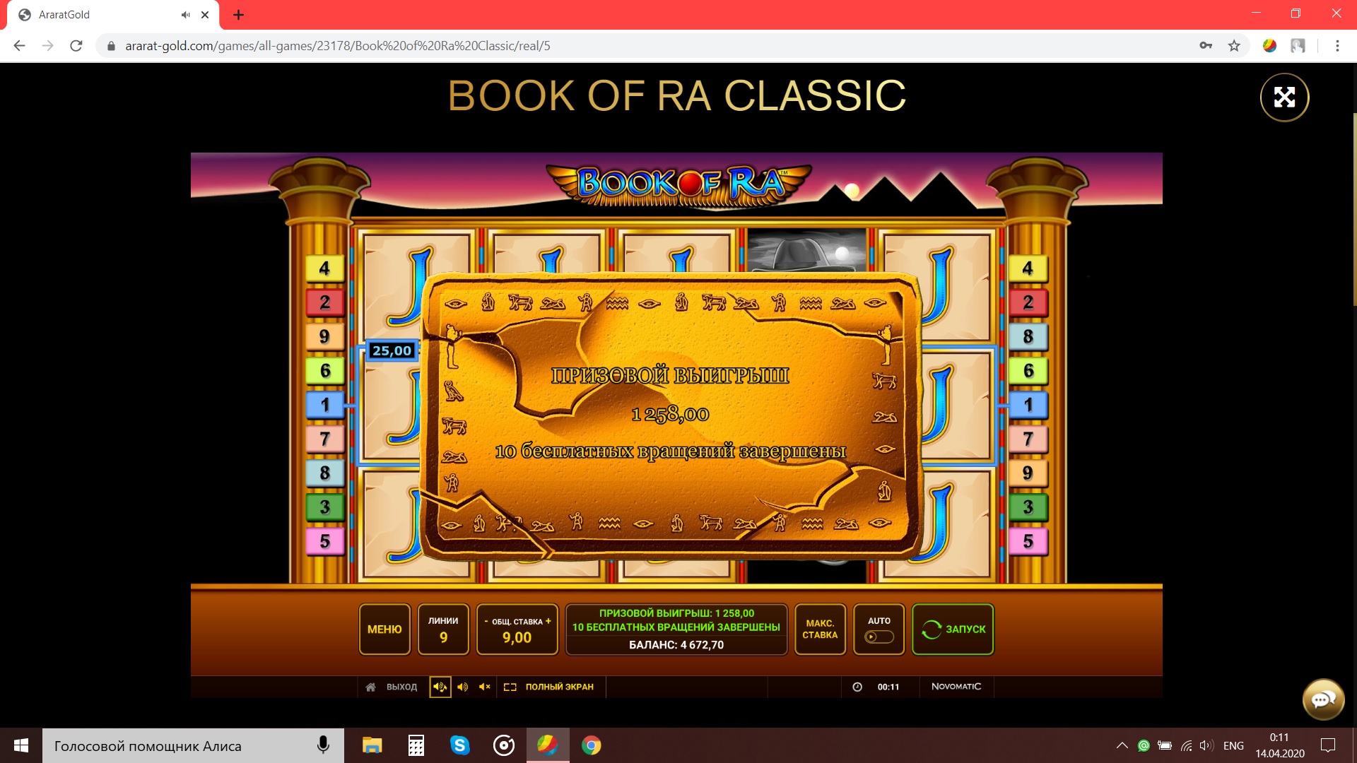 14. На скриншоте должно быть видно, что он сделан в Ararat Gold Casino, а так же дата, время, адресная строка браузера.
