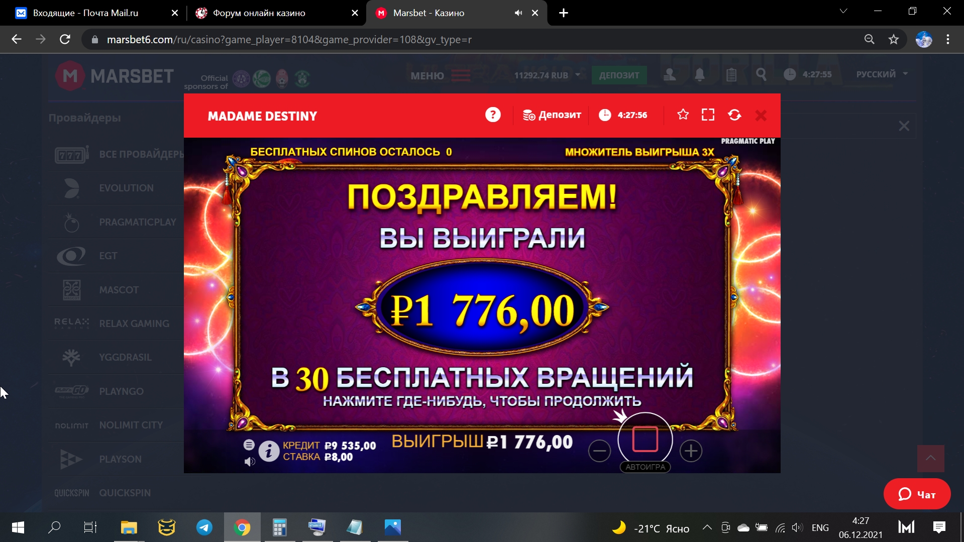 tamara Модератор Команда форума Модератор 1 Ноя 2017 3,088 118 Credits ¢53 6 Дек 2021 #86 х51 депозит 1500р=один скрин Вложения Marsbet - Казино - Opera 2021-12-06 16.18.41.png 1.5 MB Просмотры: 124 Реакции: win888 и Serega-47rus