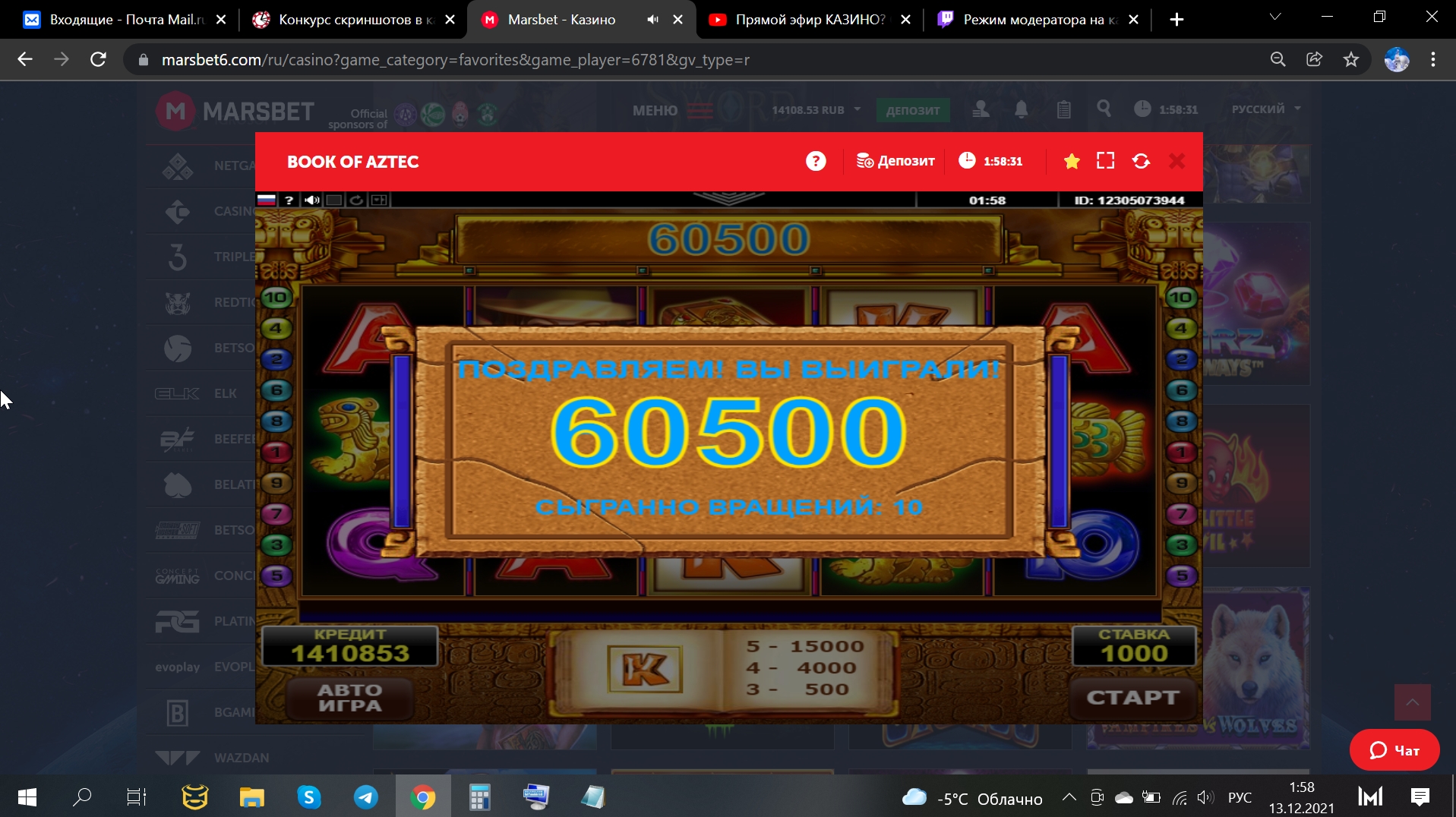 Конкурс Конкурс скриншотов в казино Marsbet-призовой фонд 135000 рублей-глав приз Apple iPhone 13 mini 128GB.
