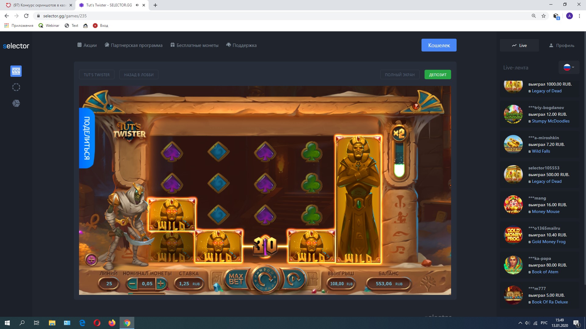 Конкурс Конкурс скриншотов в казино Selector с призами на 11000 рублей!