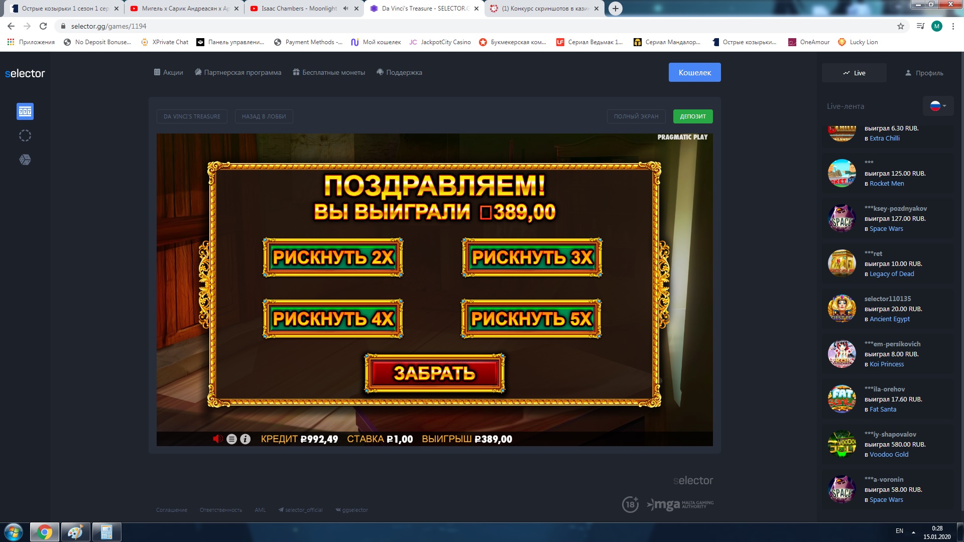 W win888 Доминатор Вайлдов Проверенный 24 Окт 2018 418 63 61 Credits ¢1,303 14 Янв 2020 #265 х68 #Selector_mycasino Вложения Скриншот 14-01-2020 201857.jpg 978.3 KB Просмотры: 302