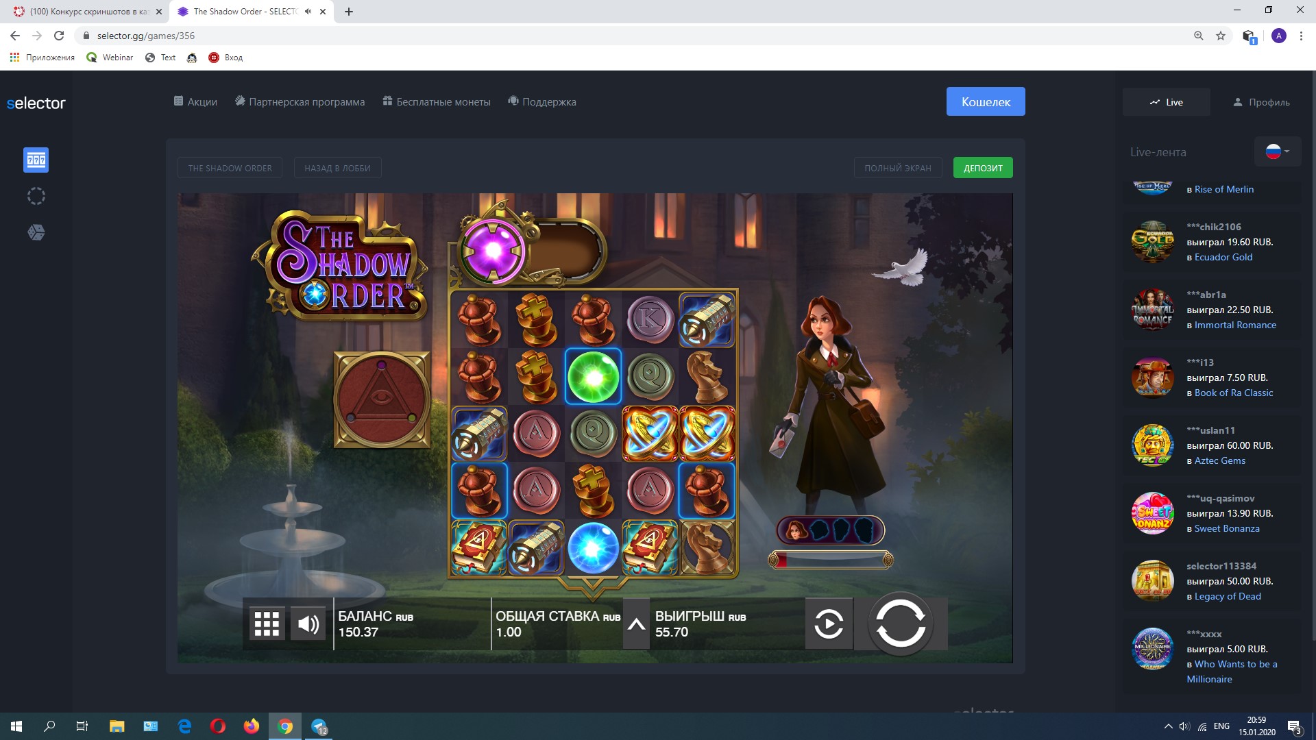 W win888 Доминатор Вайлдов Проверенный 24 Окт 2018 418 63 61 Credits ¢1,303 15 Янв 2020 #359 х156 #Selector_mycasino Вложения Скриншот 16-01-2020 004321.jpg 923.2 KB Просмотры: 330