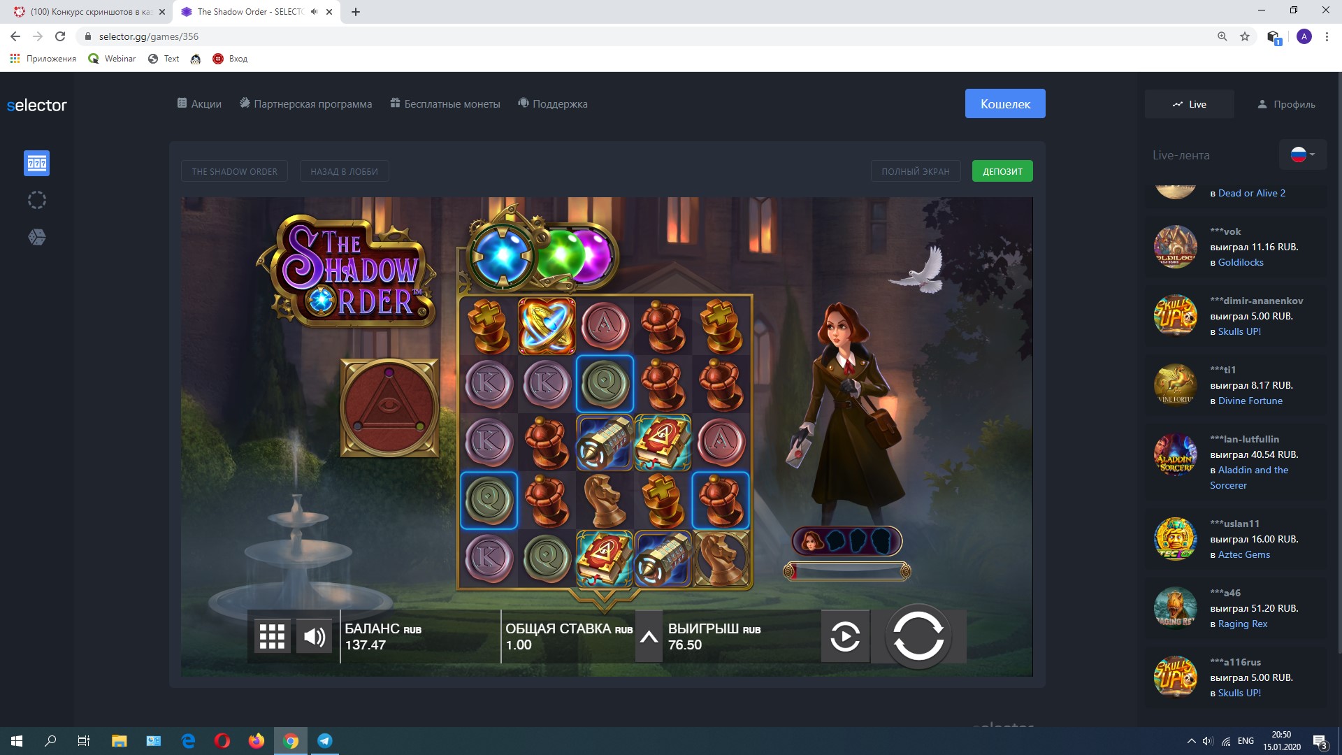 W win888 Доминатор Вайлдов Проверенный 24 Окт 2018 418 63 61 Credits ¢1,303 15 Янв 2020 #350 х75 #Selector_mycasino Вложения Скриншот 15-01-2020 234002.jpg 932.8 KB Просмотры: 289