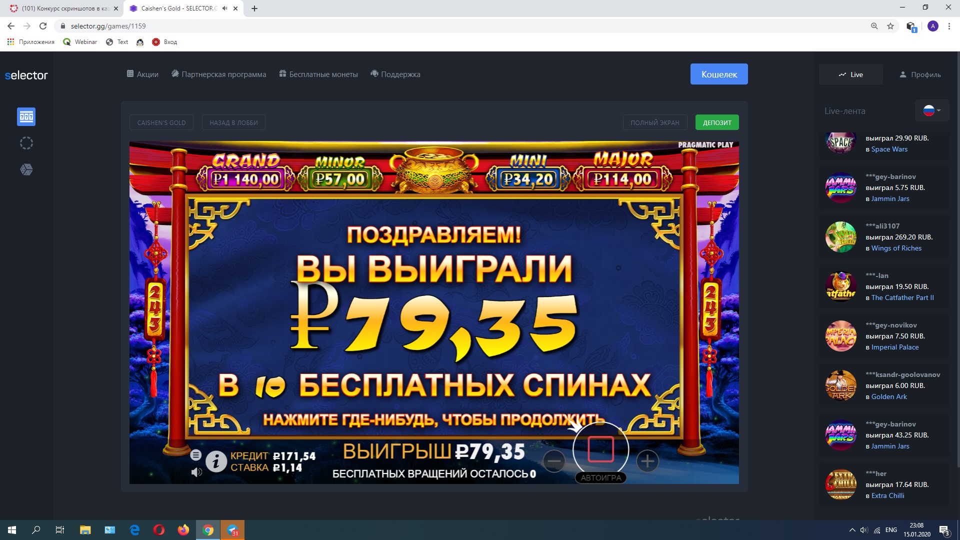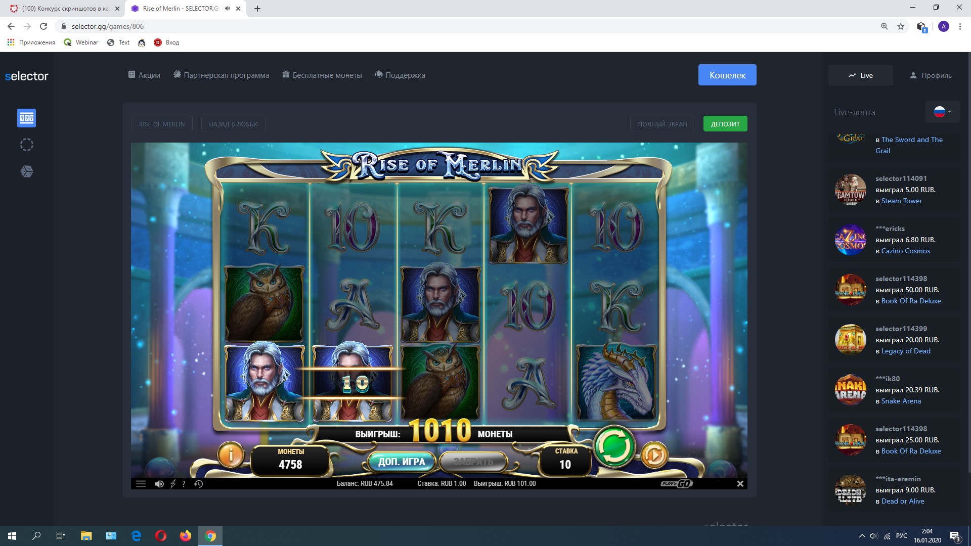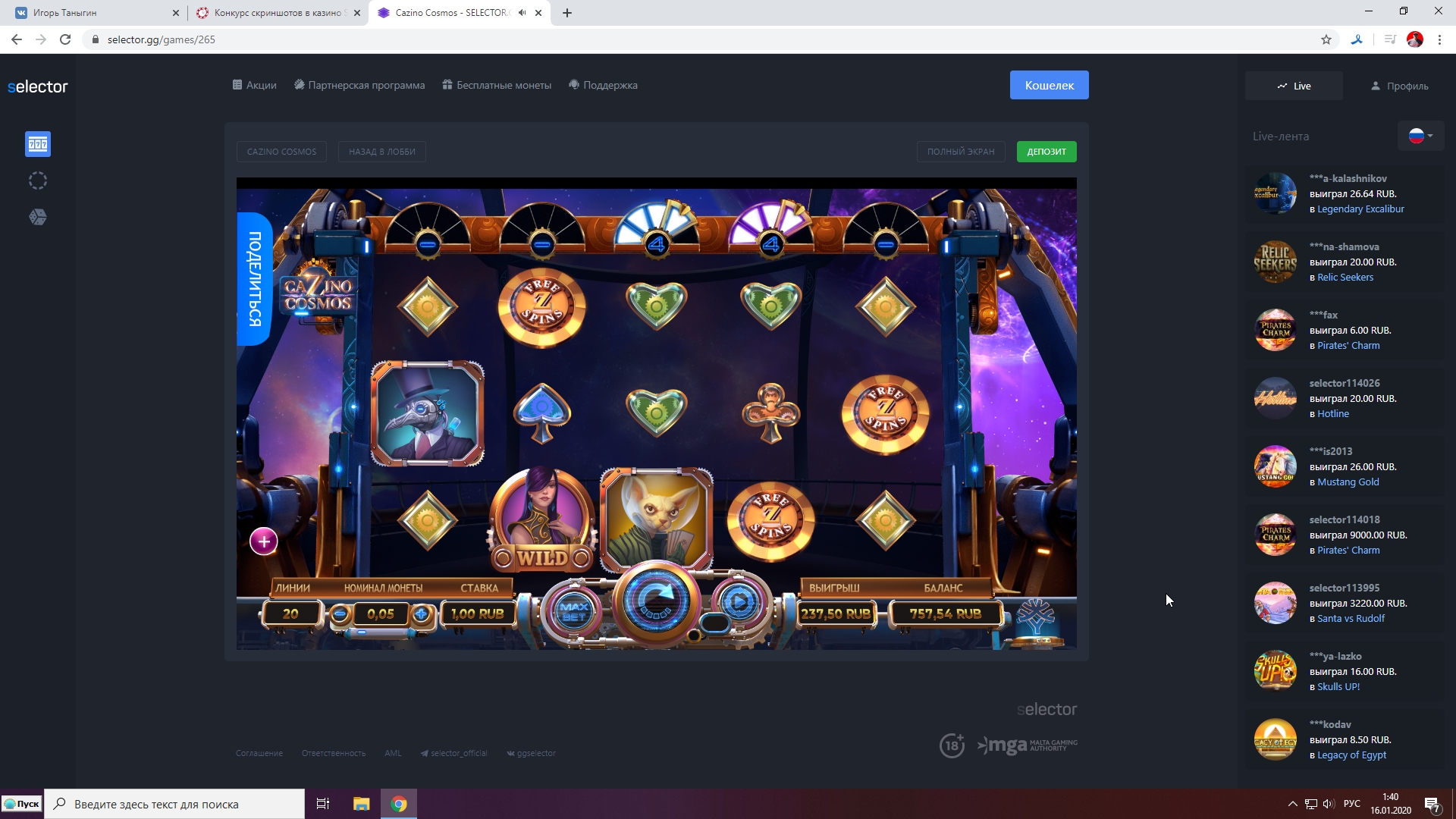 Конкурс Конкурс скриншотов в казино Selector с призами на 11000 рублей!
